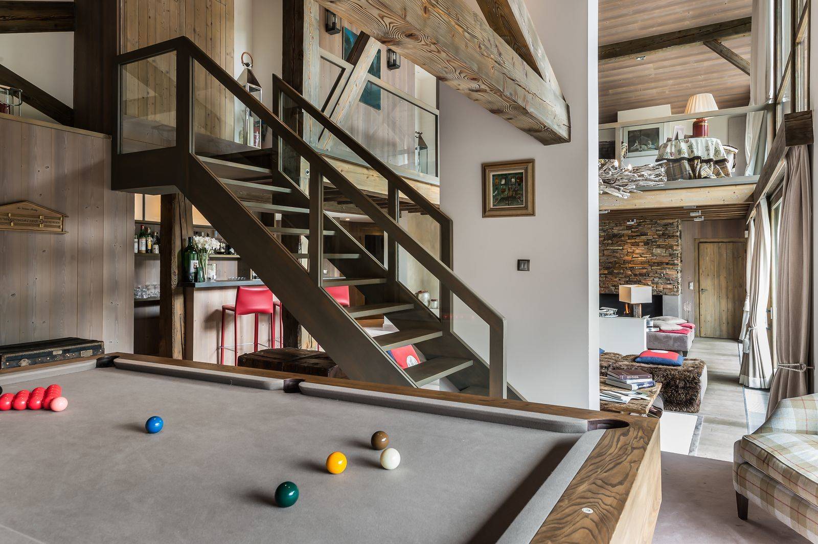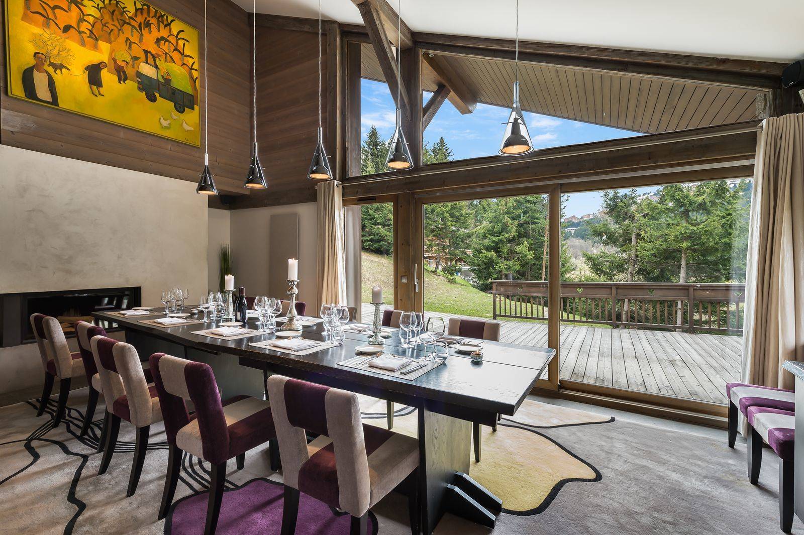 Toutes les pièces de vies sont ouvertes avec un triple séjour avec cheminée et un grand canapé en îlot et pour optimiser la convivialité qui règne dans ce chalet, un bar, billard espace relaxation. Une très grande salle à manger séparée du séjour avec une grande table et une cheminée pour pouvoir déguster le bon repas préparés par le chef selon sa créativité.