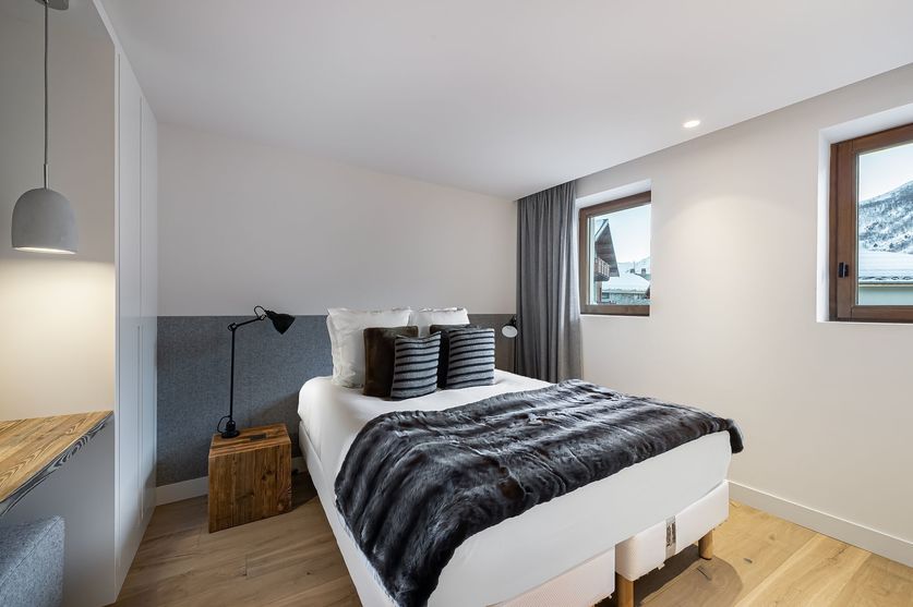 Des chambres à coucher aux mêmes notes que le reste du chalet avec un confort chaleureux. En effet, au total 5 chambres cosy agrémentées de bois avec une moquette épaisses et des rideaux de laine. Les 4 chambres doubles spacieuses et une chambre de Maître au calme qui occupe tout le dernier étage du Chalet. Toutes les chambres sont avec salle de bain privatives et wc en suite.