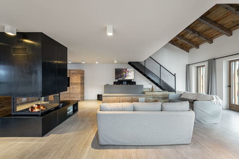 Ce Chalet Marcel est une grange entièrement rénovée avec prestige tout en préservant les matériaux des chalets savoyard. En effet, tout vêtu de gris cette couleur qui est une association parfaite avec le bois ce chalet est exemple de modernité tout en douceur.