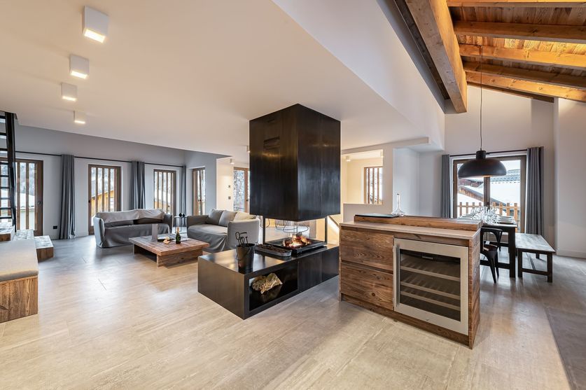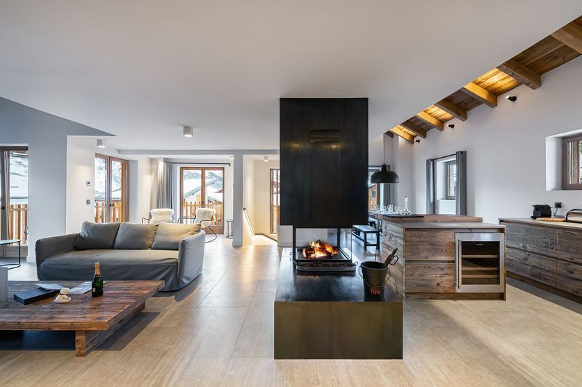 Puis, cette merveilleuse cheminée centrale fait des pièces de vie un lieux de partage et de douceur pour les longues soirées d’hiver en famille.