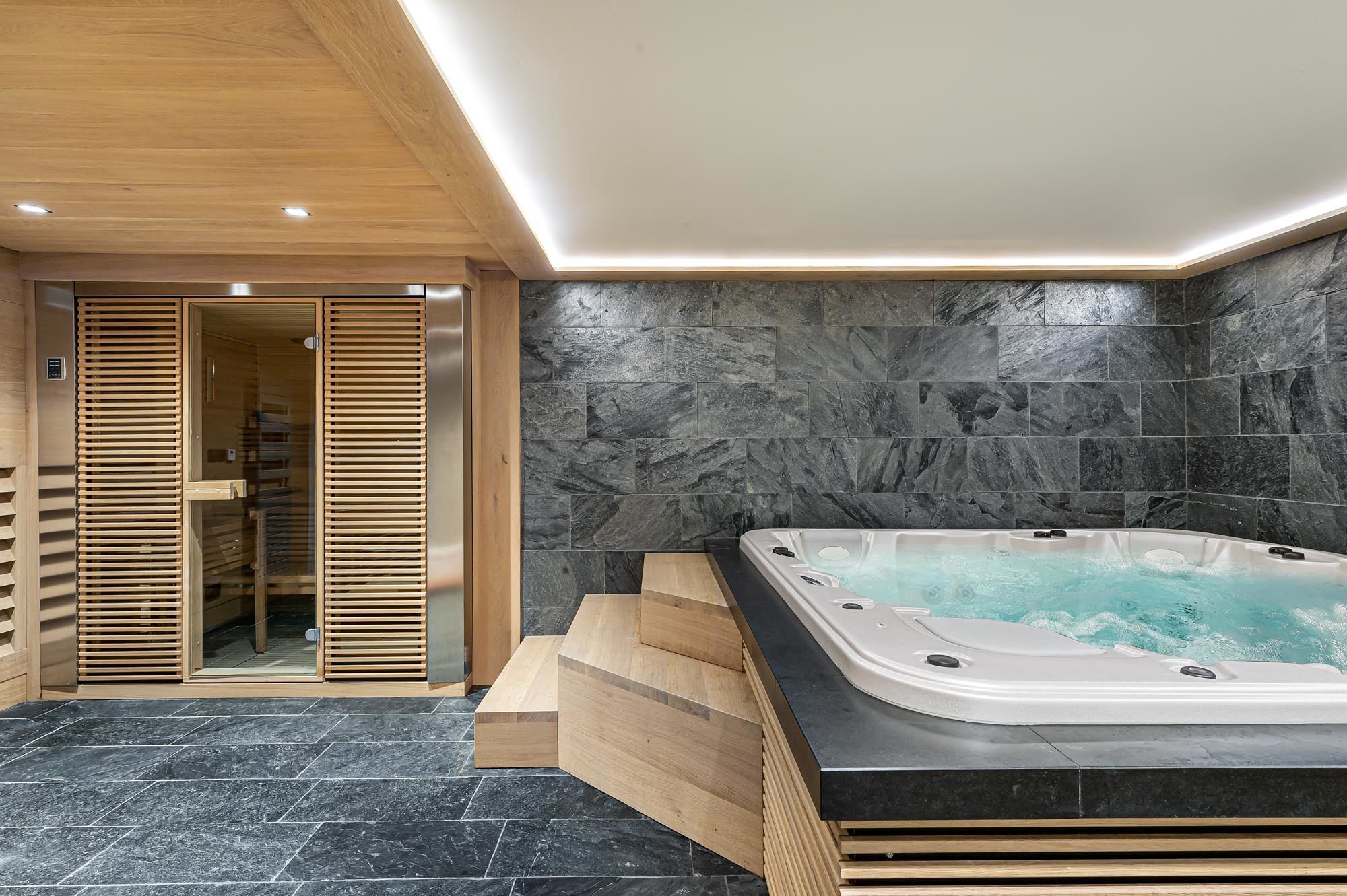 Puis, un bel espace détente, sécurisé (entrée par digicode) comprenant : un spacieux jacuzzi, un sauna et une douche/hammam
