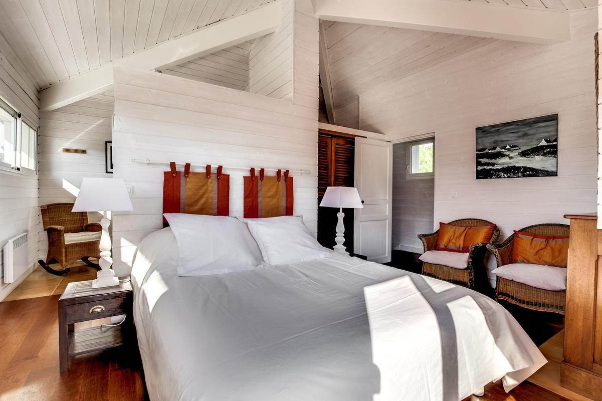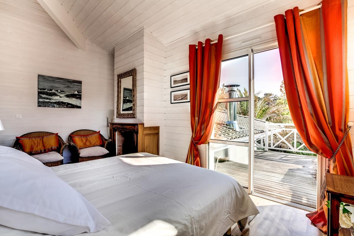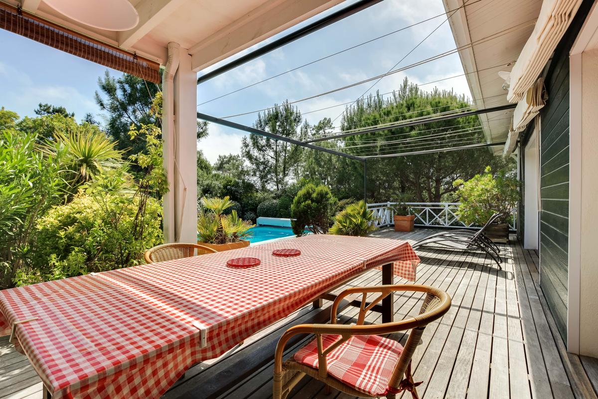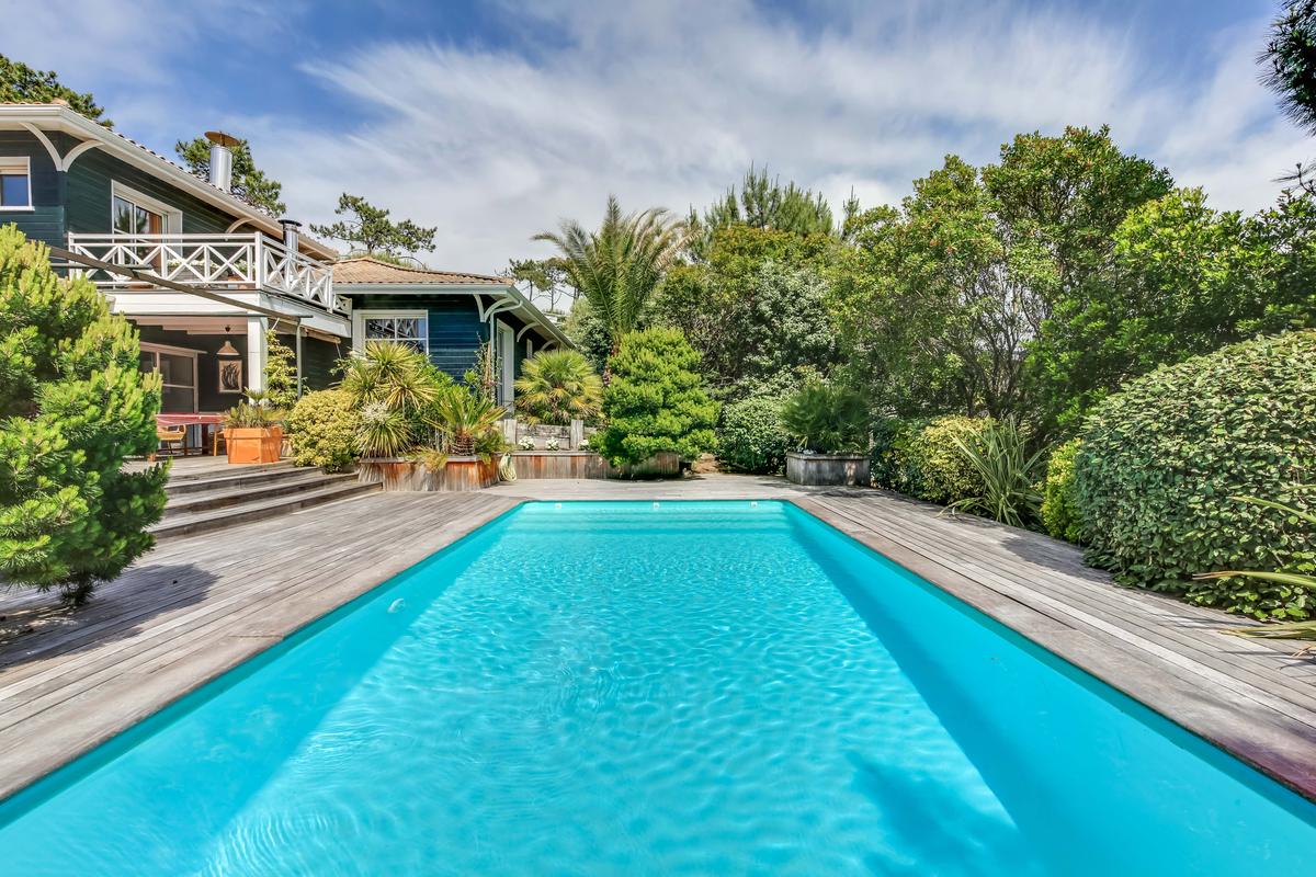 Une ambiance exotique règne, quelque part entre la Louisiane et les tropiques. C’est certainement dû à la végétation exubérante qui abrite le jardin et la piscine, mais aussi la charpente en bois de la villa, les terrasses et les porches où l’on peut déjeuner, se détendre, profiter de la mer et de la forêt de pins…. Les enfants vont adorer la piscine d’eau salée de 9x4m, chauffée de la mi-mai à la mi-octobre.