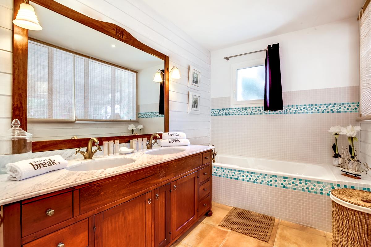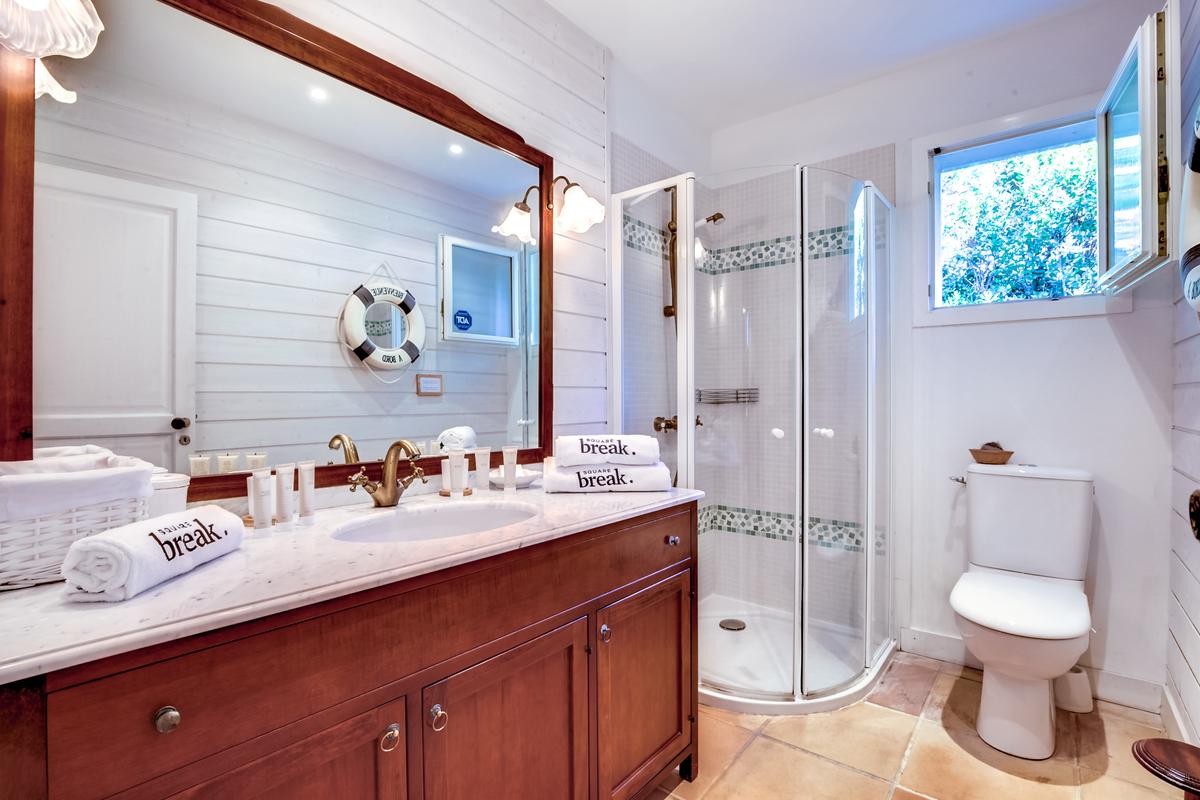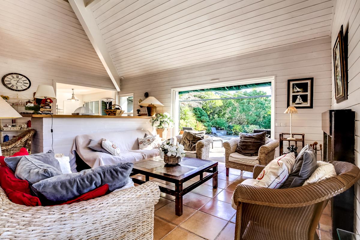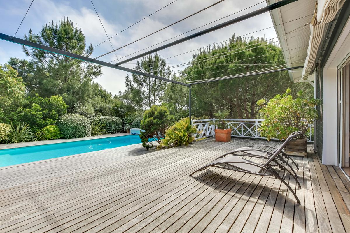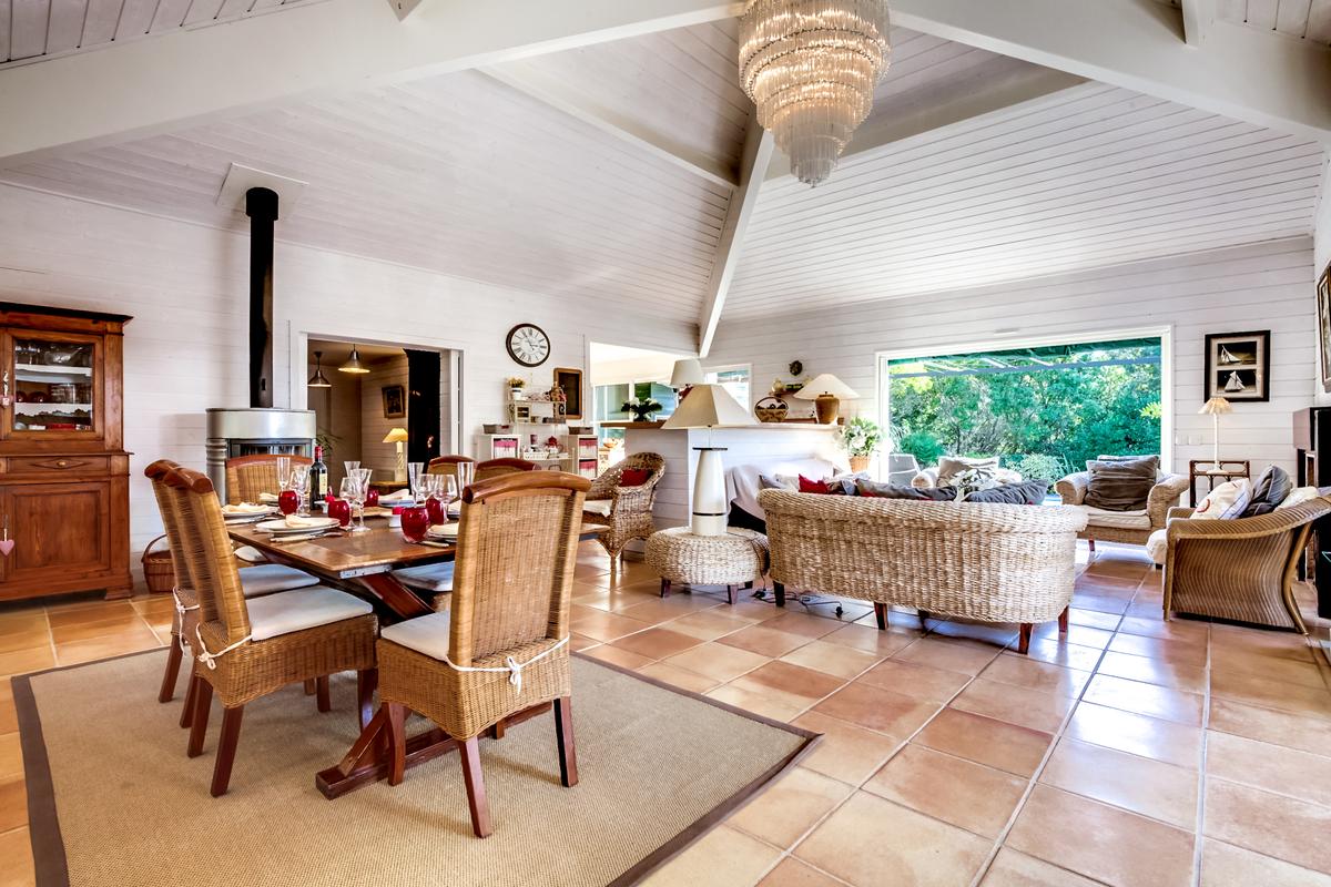 Une ambiance exotique règne, quelque part entre la Louisiane et les tropiques. C’est certainement dû à la végétation exubérante qui abrite le jardin et la piscine, mais aussi la charpente en bois de la villa, les terrasses et les porches où l’on peut déjeuner, se détendre, profiter de la mer et de la forêt de pins…. Les enfants vont adorer la piscine d’eau salée de 9x4m, chauffée de la mi-mai à la mi-octobre.