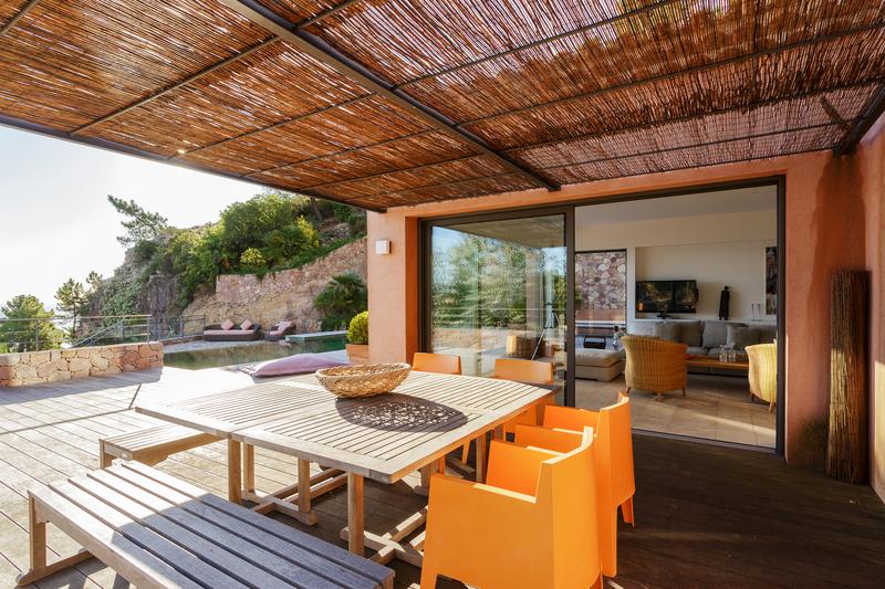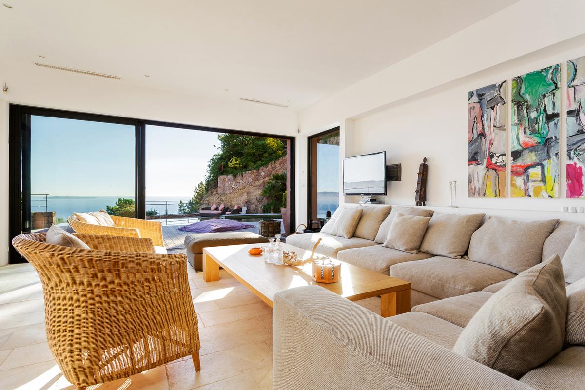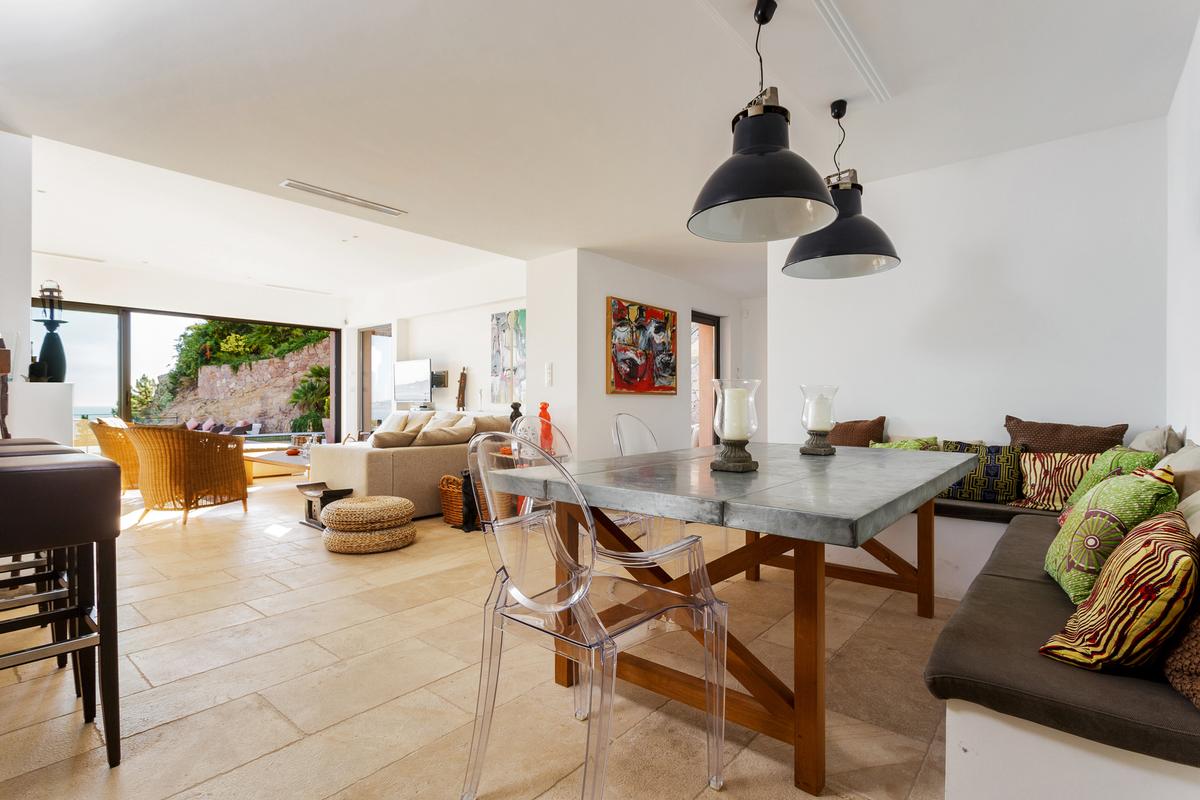 Afin que vous puissiez profiter pleinement de l’environnement de la villa, le salon, la salle à manger et la cuisine s’ouvrent largement sur la terrasse de 160m2 avec une piscine à débordement et un jacuzzi donnant sur la mer.