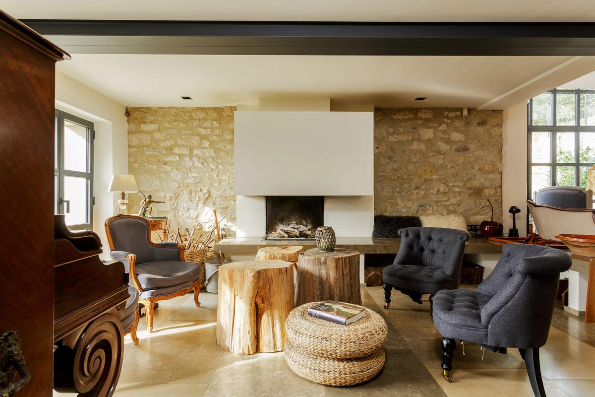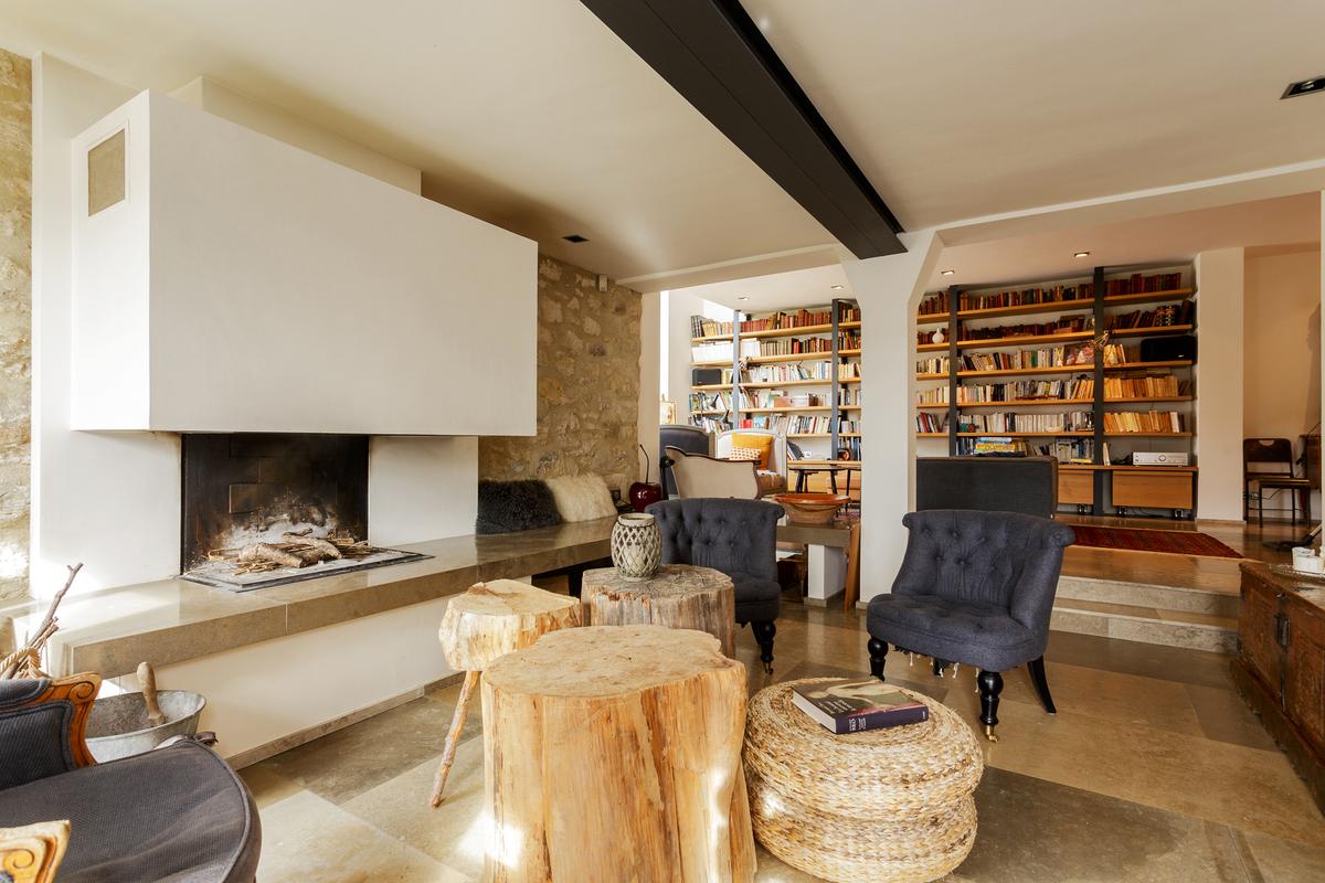 Au rez-de-chaussée, une grande entrée s’ouvre sur la belle cuisine/salle à manger, le cœur de la maison. Merveilleusement bien équipé (poêle La Cornue pour les experts), il s’ouvre d’un côté de la maison, où une salle à manger extérieure a été aménagée sous une tonnelle, légèrement au-dessus de la pièce. De l’entrée et de la cuisine, on accède aux deux espaces de vie : la salle de lecture et la salle de musique, à la fois cosy et élégant. Dans l’entrée, à votre droite, une salle de télévision avec un canapé confortable et des toilettes attenantes.