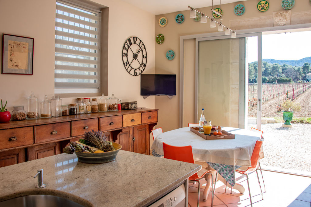 Le charme des Mas de Provence pour cette magnifique propriété qui a une vue sublime sur les vignes. Une villa familiale pour se retrouver et passer d’agréables vacances.