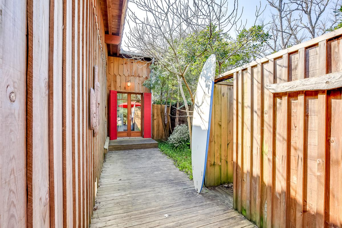Epitomisant l'esprit de nature du Cap Ferret, cette cabane en bois est comme un loft haut de gamme. Très bien situé au nord du Cap, à mi-chemin entre la Baie et l’océan, à 5 minutes à pied de la plage, il a tout le charme et le confort de belles vacances en famille. Construite sur un jardin de 750m2, la maison dispose de deux belles terrasses pour profiter du soleil quelle que soit l’heure de la journée. La grande chambre en mezzanine, la disposition en deux niveaux et la décoration à la fois simple et accueillante confèrent à la maison une atmosphère particulièrement conviviale