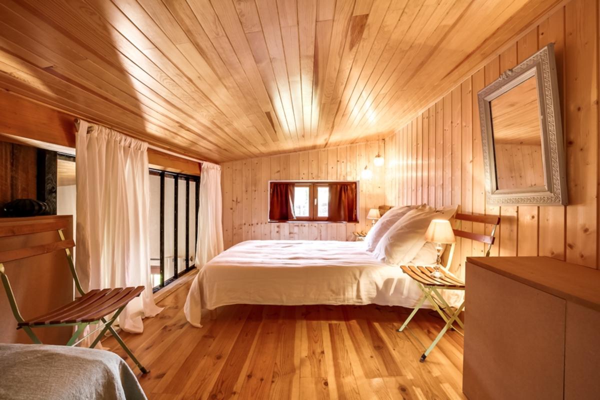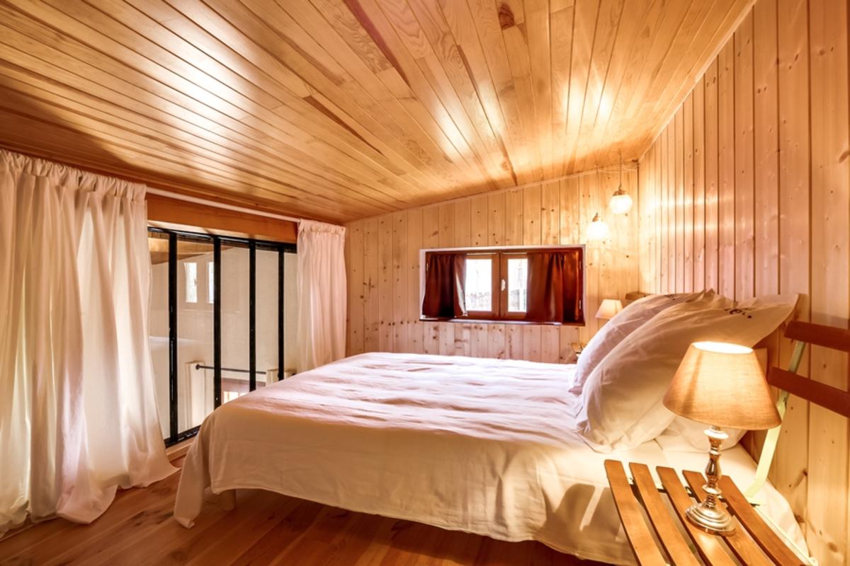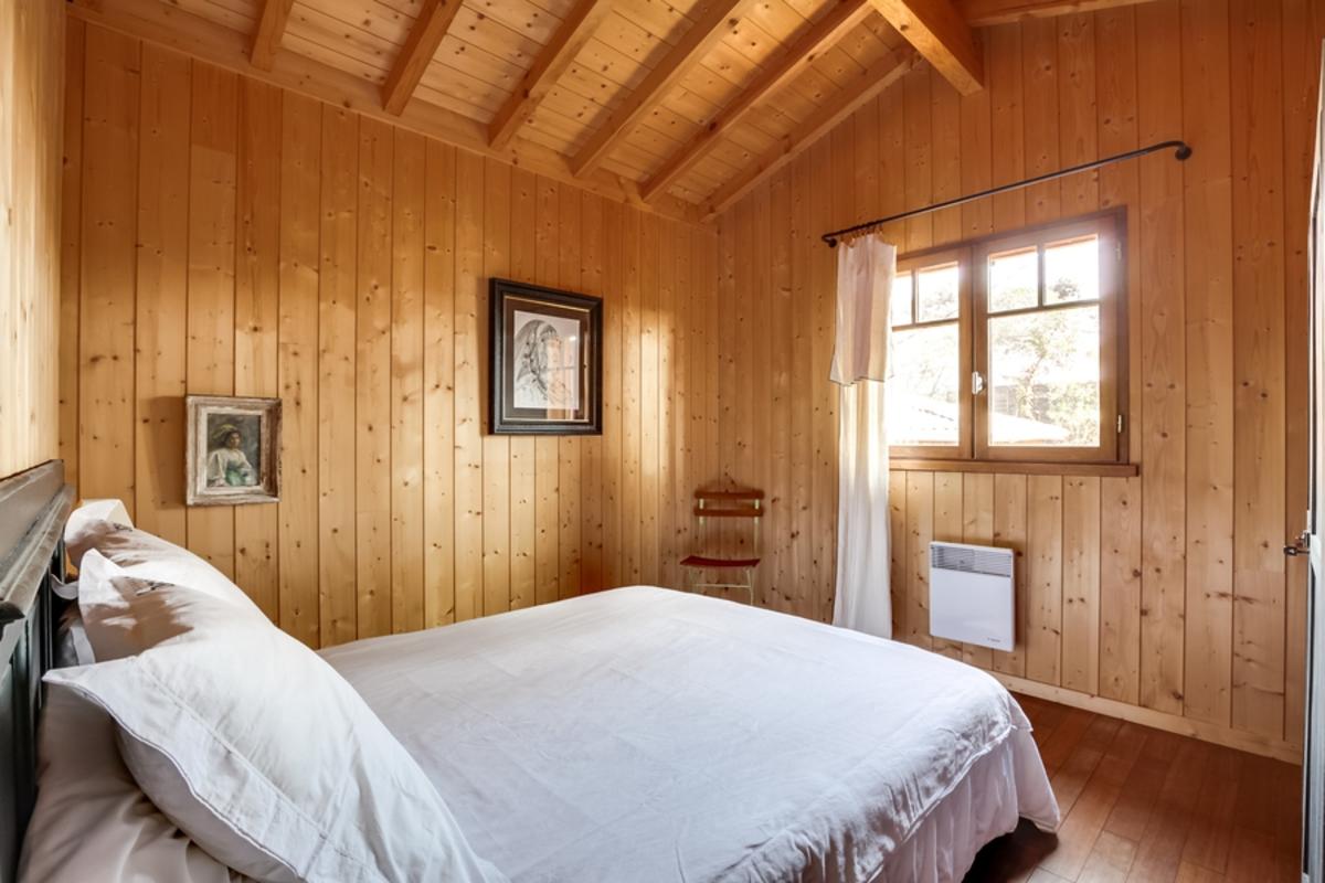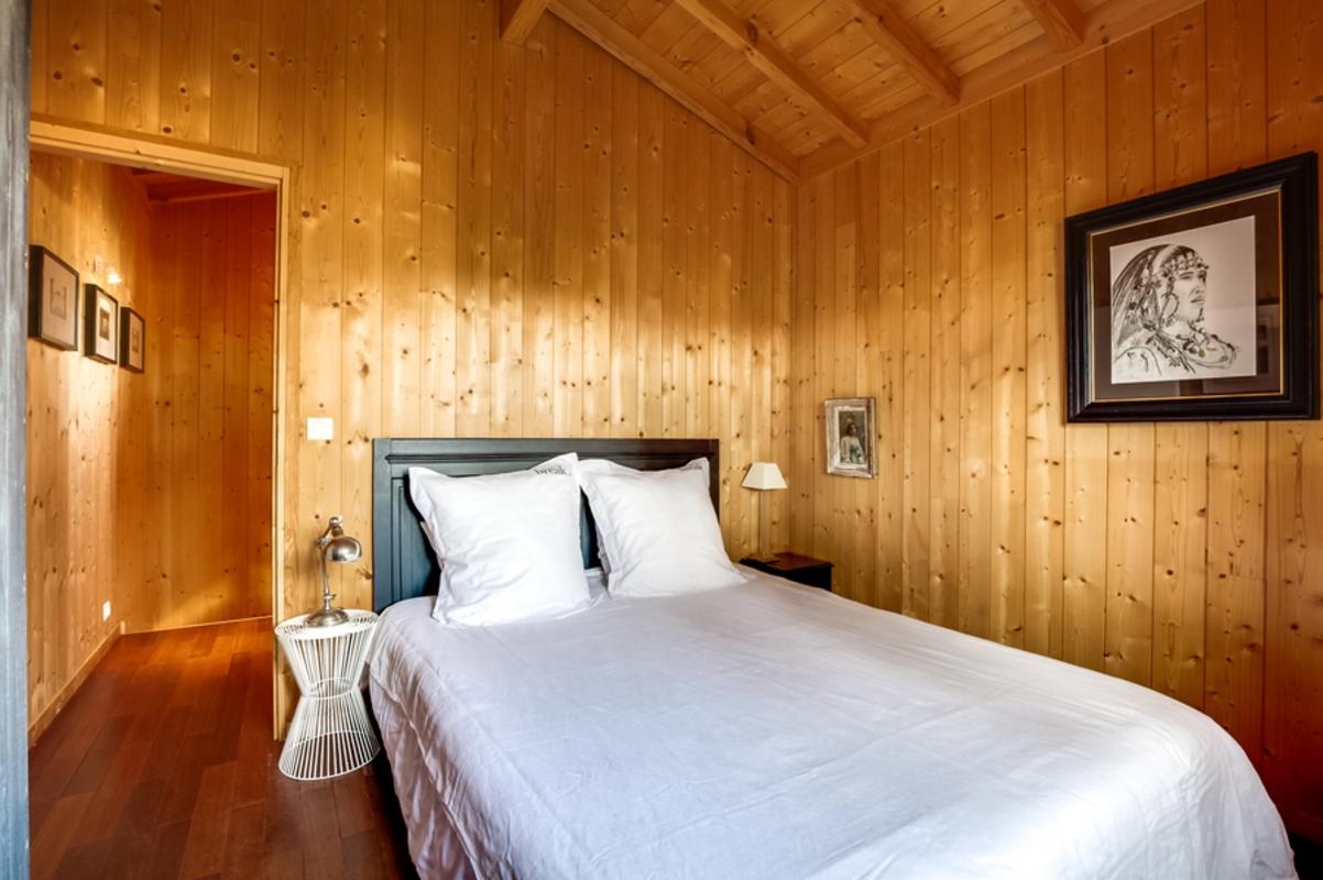 – chambre de maître en mezzanine, donnant sur le séjour grâce aux grandes baies vitrées