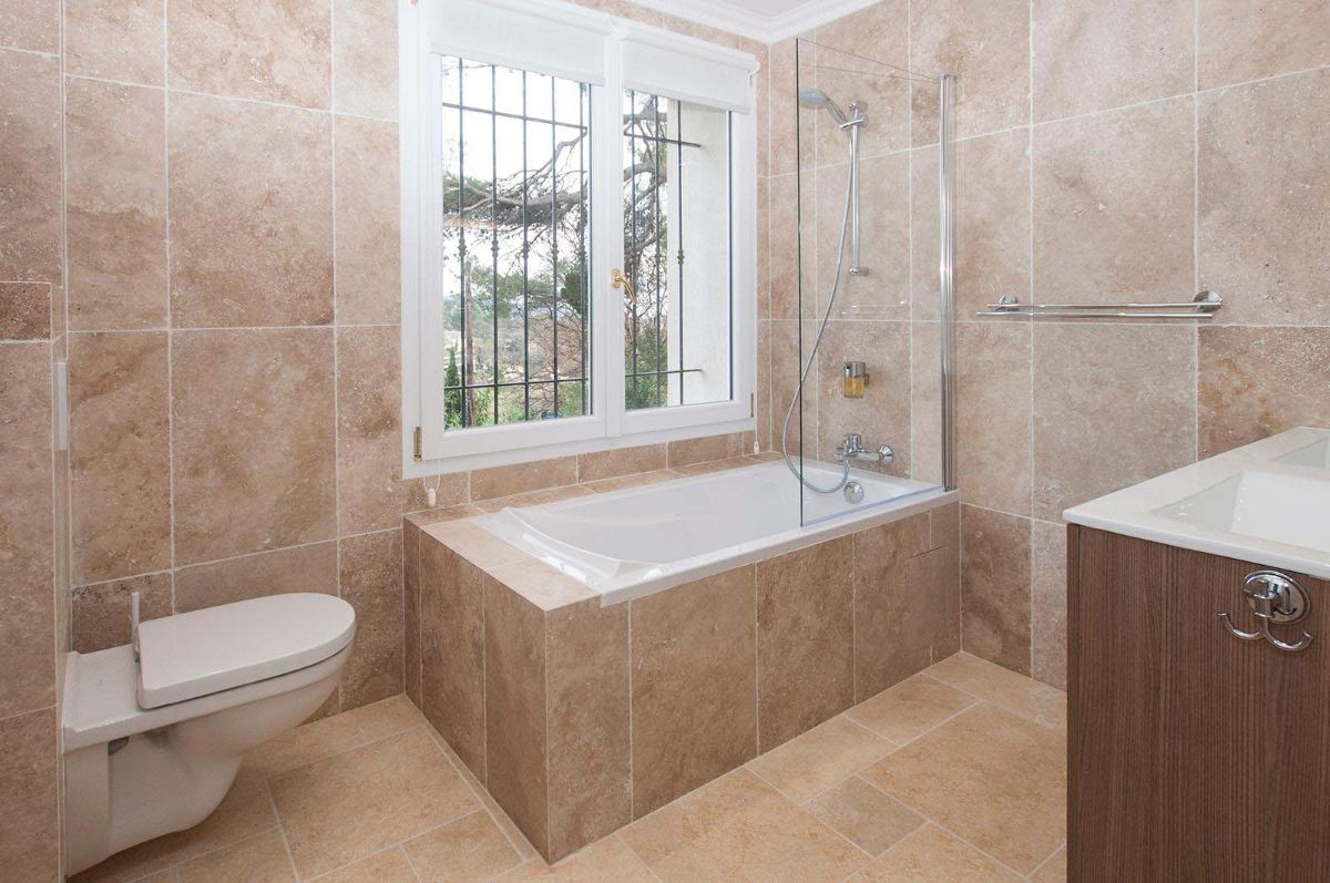 Puis en rez-de-jardin un espace de vie supplémentaire donnant sur une grande terrasse couverte et une piscine. Ainsi qu’une petite buanderie et trois autres grandes chambres avec salle de bain attenante. En fait, les pièces donnant sur la terrasse couverte permet une ombre bienvenue pendant les chaleurs de l’été. De plus, cette terrasse ombragée dispose de coins salons isolés pour dîner, lire ou se détendre tranquillement.