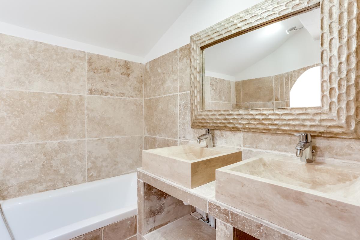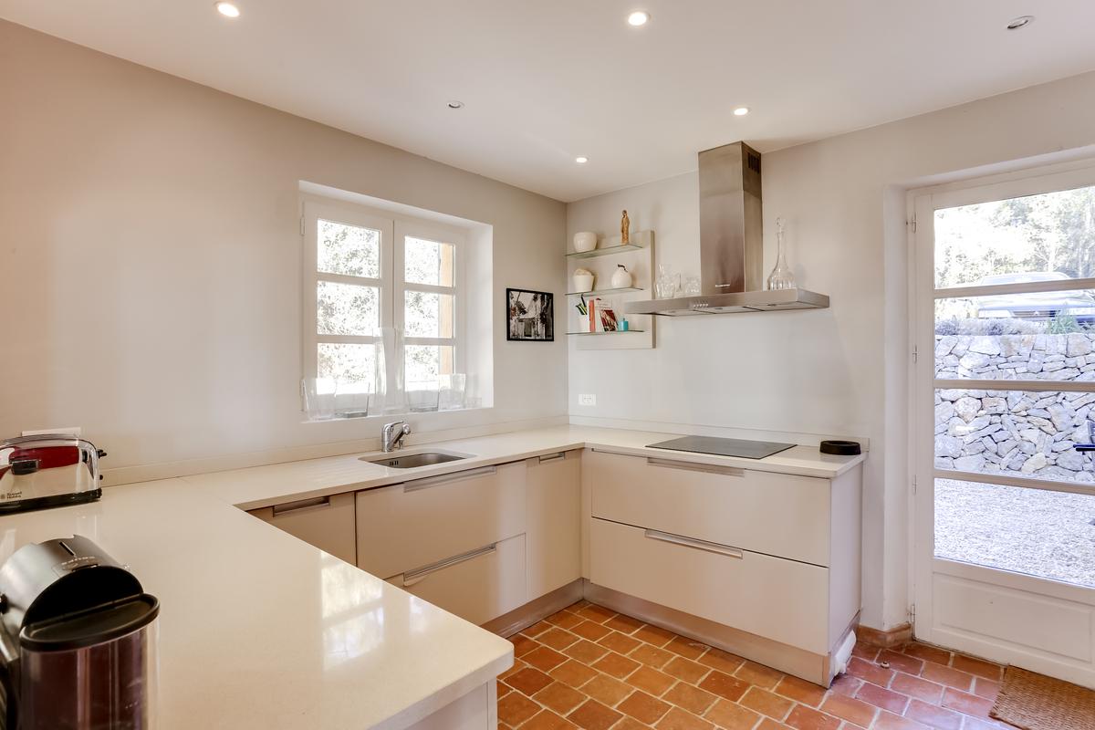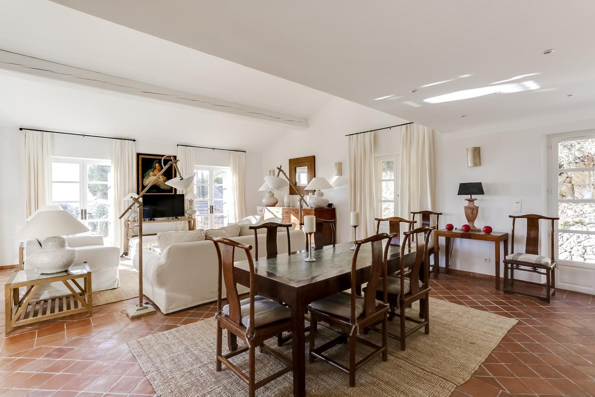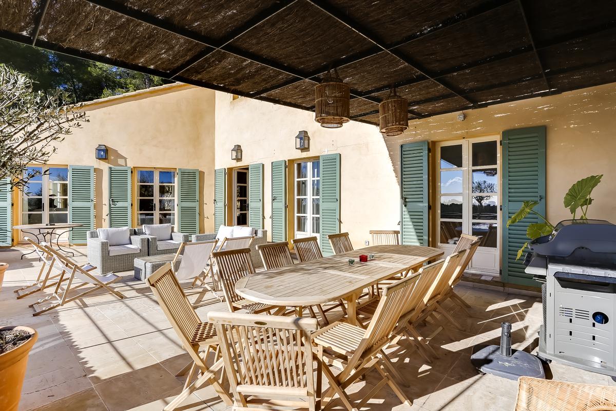 L’intérieur est décoré avec goût dans un style champêtre chic avec un aspect et un toucher doux et doux. Les tons blanc et ocre sont rehaussés par des touches de couleurs provençales. La villa est bien chauffée en hiver et fraîche en été (climatisation au sol), offrant un haut niveau de confort en toutes saisons. En effet, aménagée sur deux niveaux et très ouvert sur l’extérieur. La villa dispose d’une spacieuse terrasse meublée avec une pergola ombragée pour les repas en plein air par beau temps.