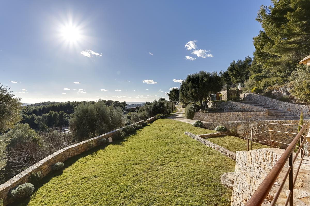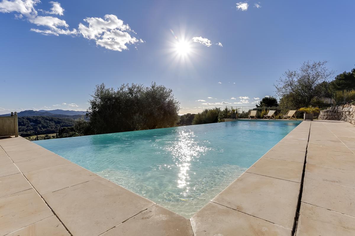 Cette villa récente, construite dans l’esprit provençal, est cachée en haut de la colline, cachée au milieu des pins, des oliviers et des lauriers roses. Puis, cette villa luxueuse magnifiquement intégrée dans un terrain de 6000 m2 de pentes en terrasses bordées d’arbres. En fait, une vaste étendue de paysages intacts, verts et vallonnés se déploie devant vous. Puis, avec une vue qui s’étend jusqu’à la mer Méditerranée. Enfin, la superbe piscine à débordement chauffée de 15 mètres offre un panorama tout aussi spectaculaire. Très privé, mais pas isolé, car le voisin le plus proche est à 300 mètres.