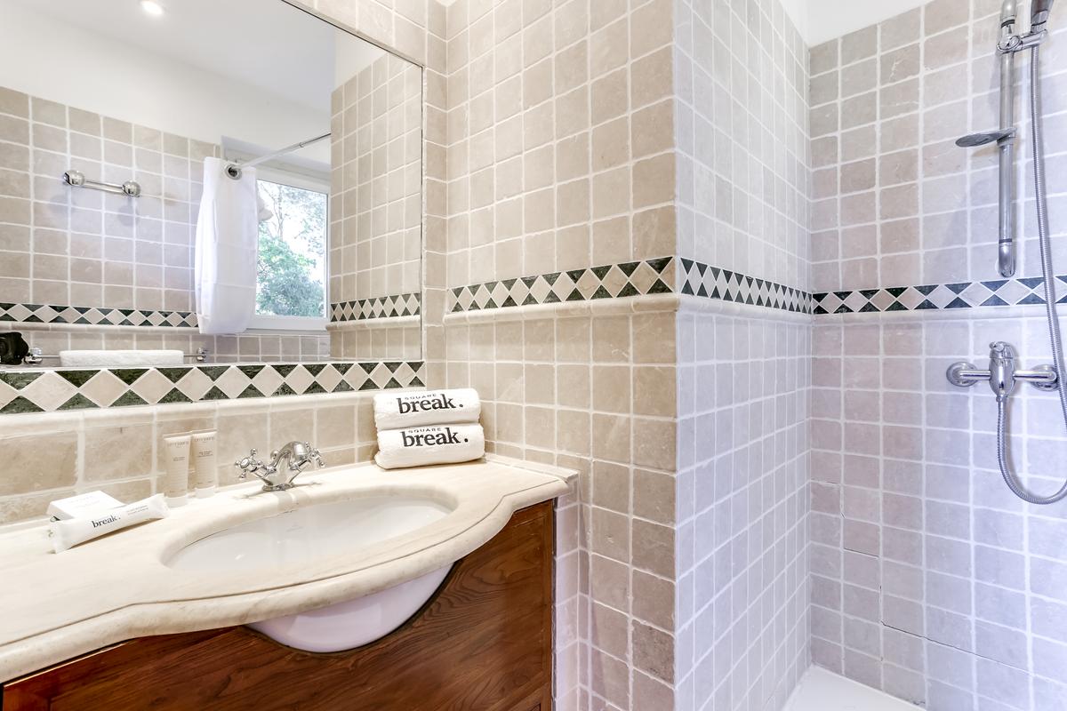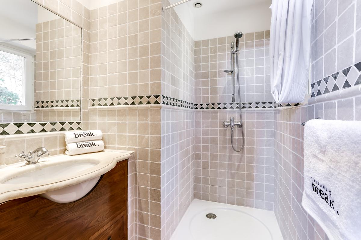 Au rez de jardin se trouve une grande chambre avec trois lits simples de 90 cm donnant sur le jardin avec salle de bain attenante. Puis une buanderie.
