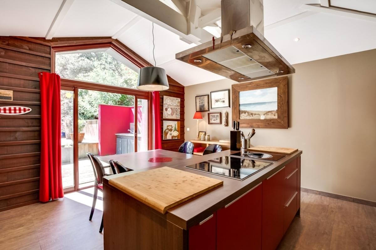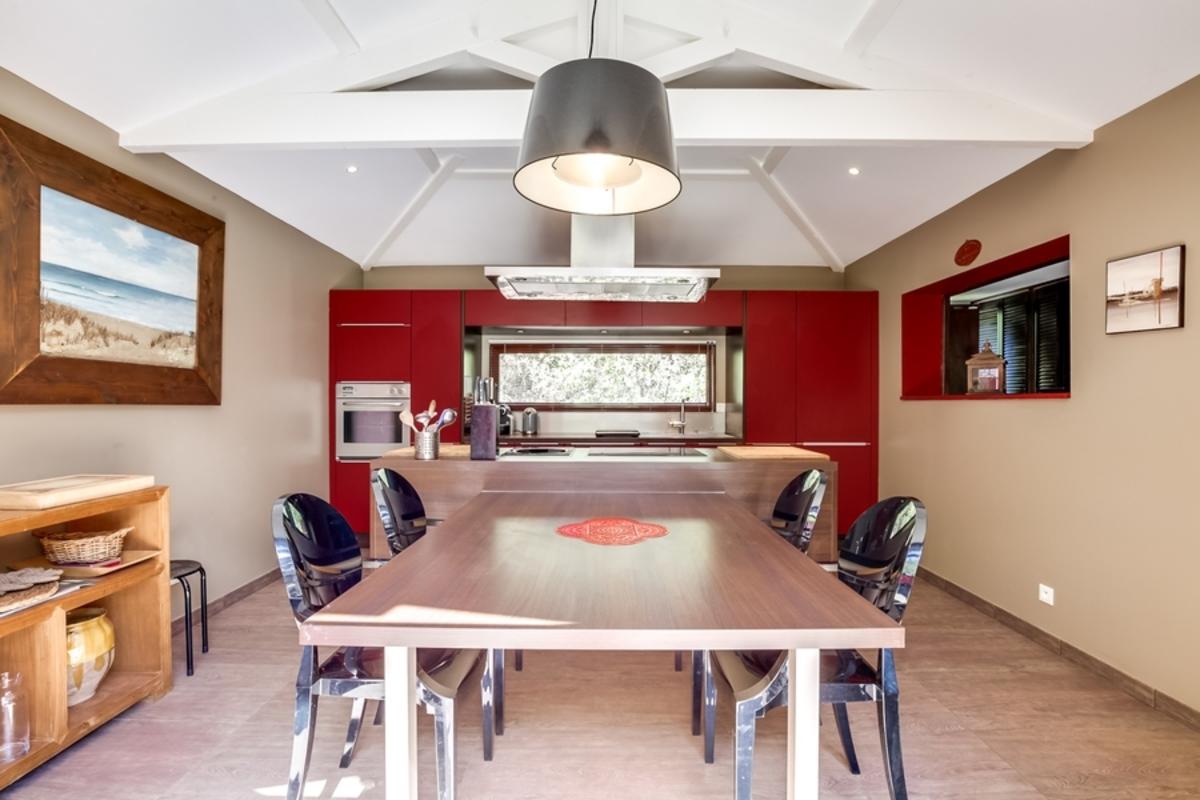 – cuisine bien équipée avec îlot central et table pour les petits déjeuners