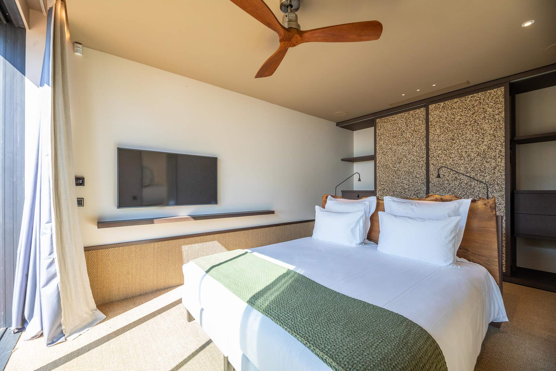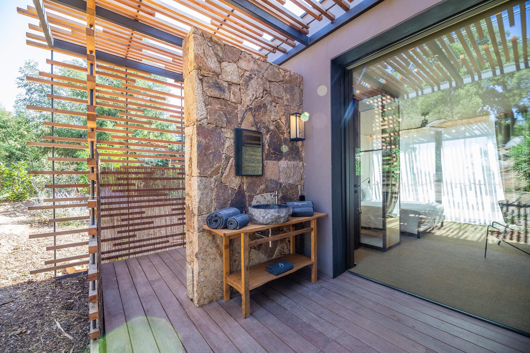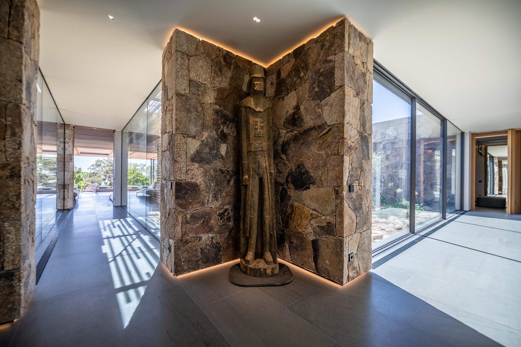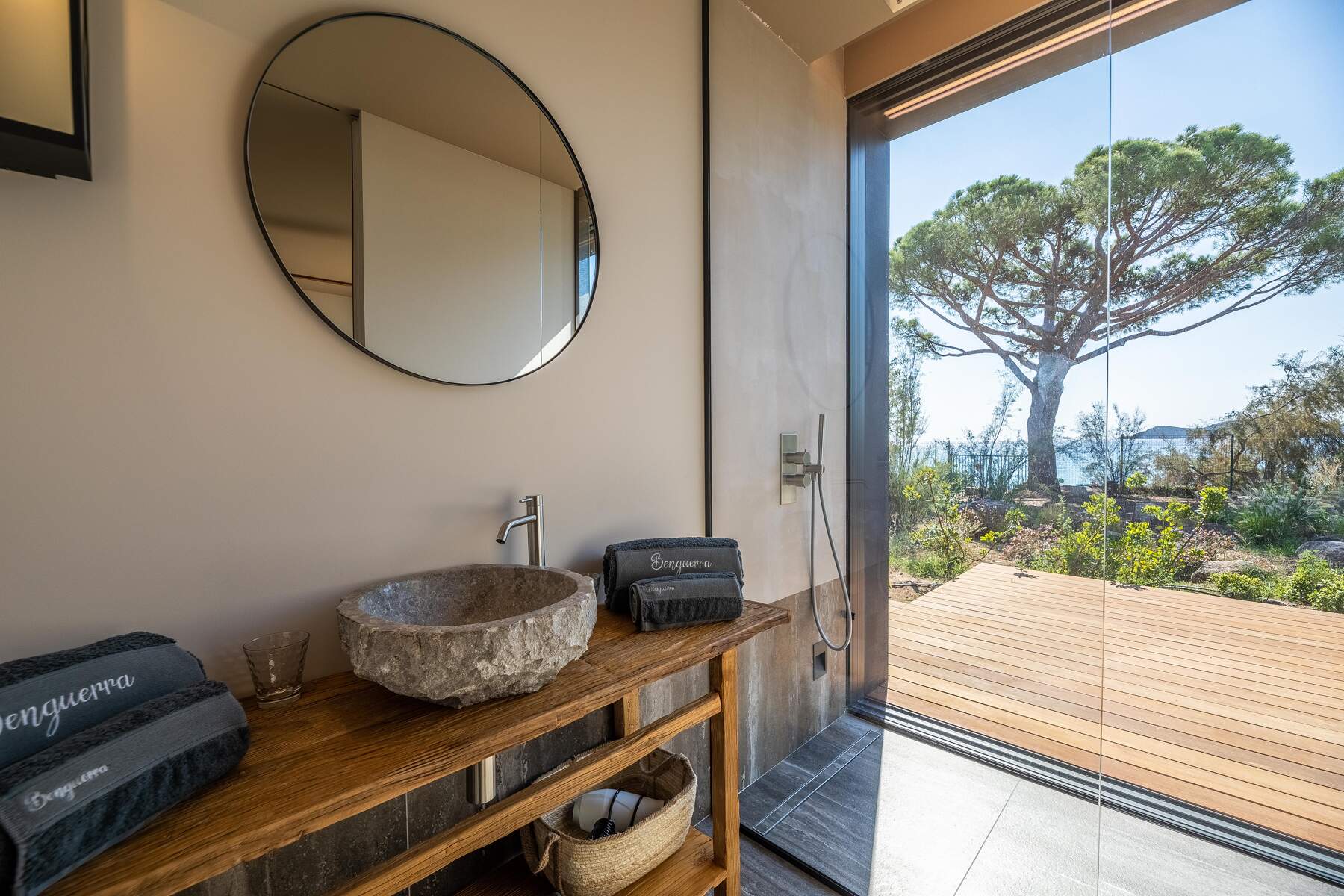 La décoration est chaleureuse et l’architecte d’intérieur a donner une vraie âme à cet endroit particulier. En fait, le mélange choisi de divers matériaux nobles en toute modernité et confort nous invite à la contemplation. Des lignes épurées et des prestations hauts de gamme sont un vrai plaisir pour séjourner dans cette villa luxueuse.