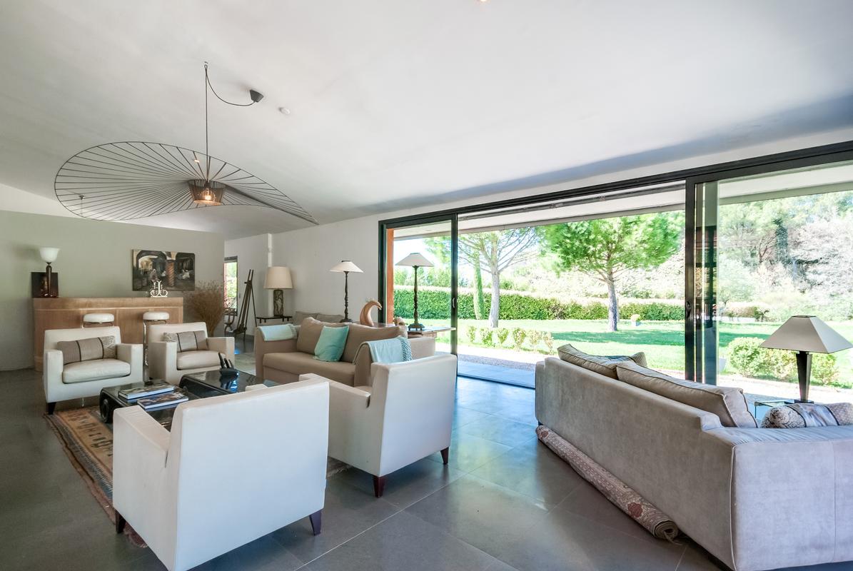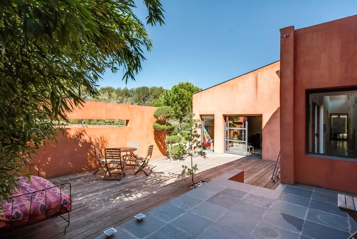 Étonnamment bien intégrée à l’environnement naturel, cette propriété de 5000m2 est une oasis de calme à quelques minutes du centre ville. Niché dans les pins et les oliviers, sa belle couleur ocre se fond dans la verdure. D’immenses baies vitrées brouillent les lignes entre l’extérieur et l’intérieur, augmentant le sens de l’espace et l’harmonie avec la nature