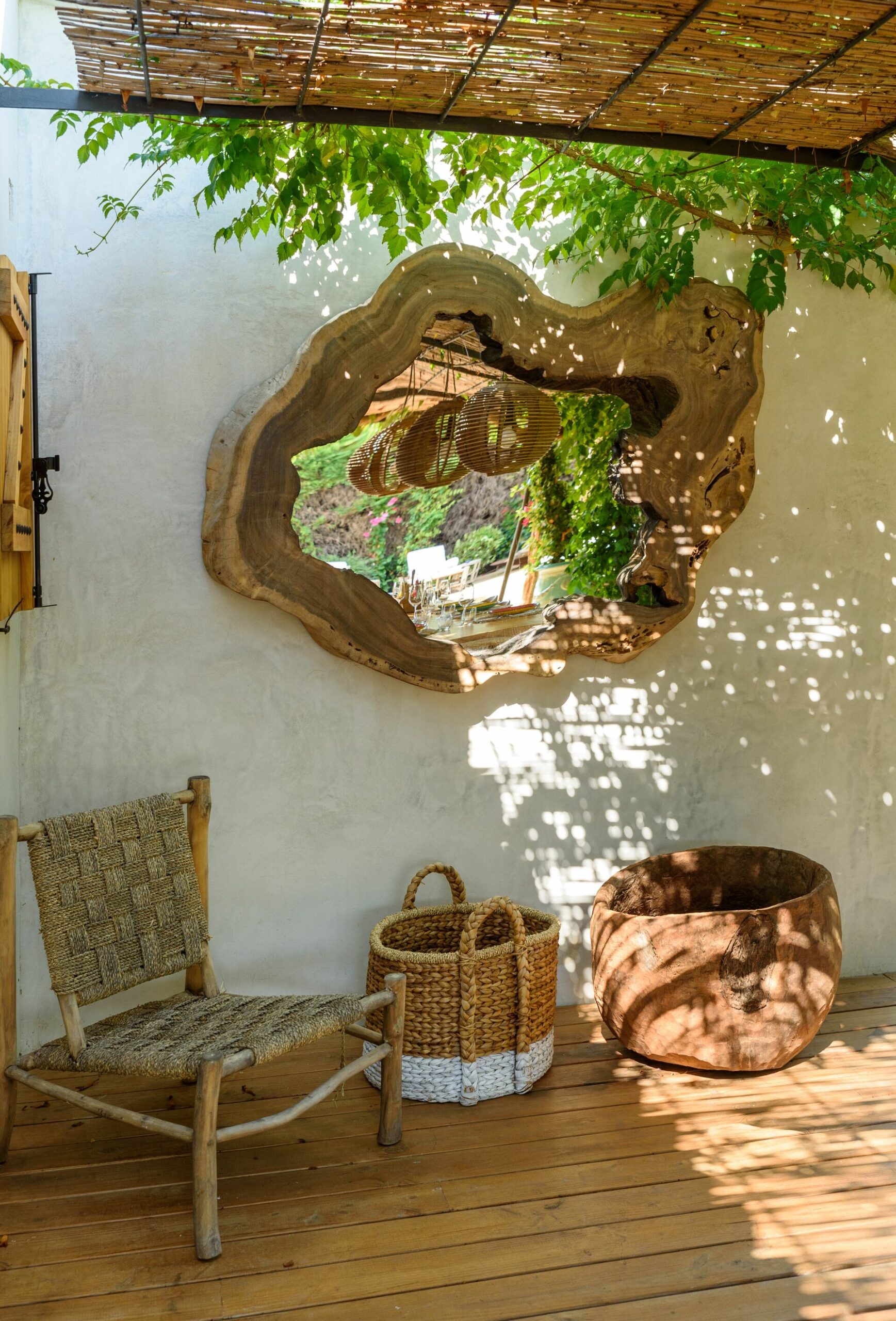 Pour finir, la belle cuisine avec ses carreaux de céramique colorés est en harmonie avec le reste de la maison. Tout d’abord, la salle à manger donnant sur la cuisine dispose d’une table design en bois. Mais aussi, tous les intérieurs de la Villa Cicadis se caractérisent l’élégance et le raffinement.