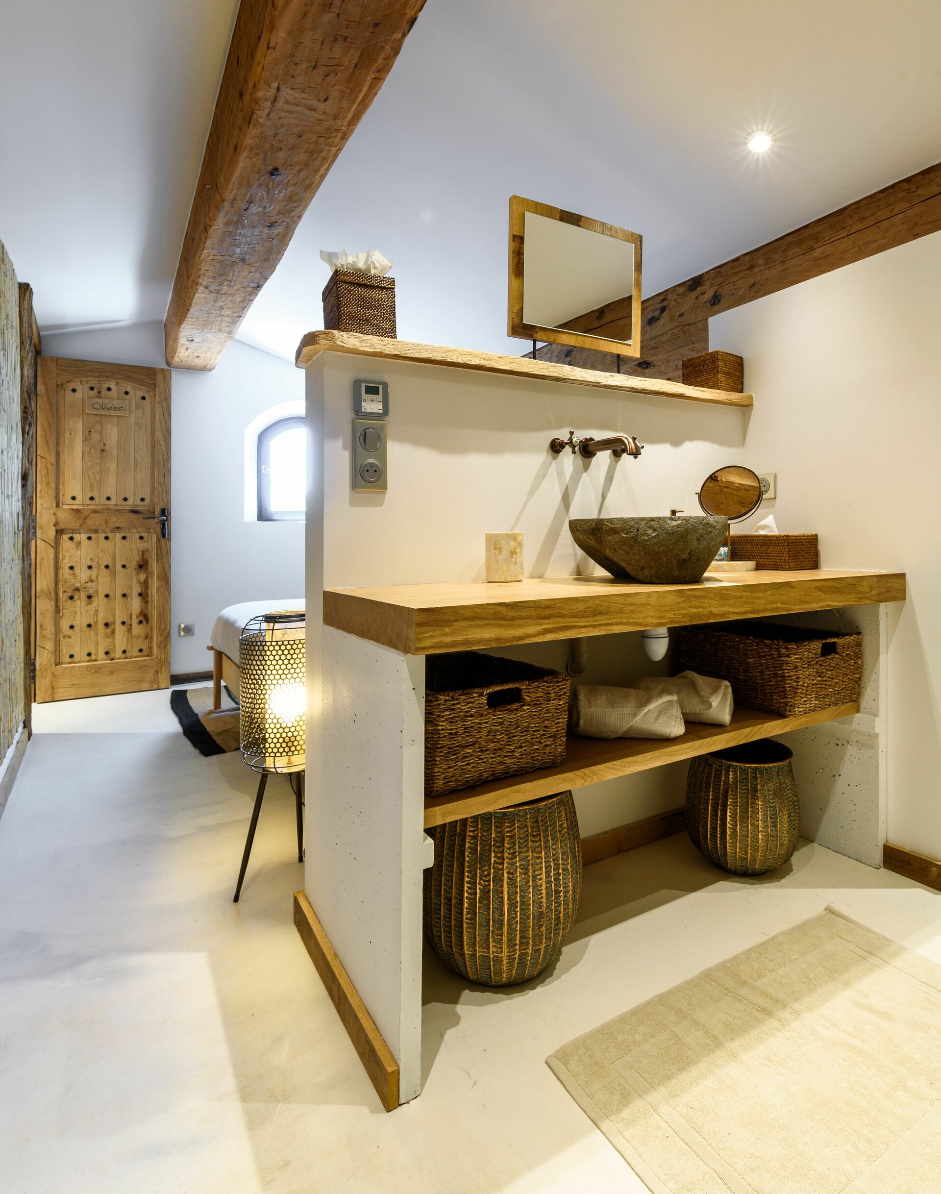 La décoration intérieure allie simplicité et élégance, utilisant des matériaux nobles et authentiques. En fait, la noblesse du chêne massif, du châtaignier ou du béton ciré blanc. En effet, les tons clairs et naturels rendent l’atmosphère agréable et paisible.
