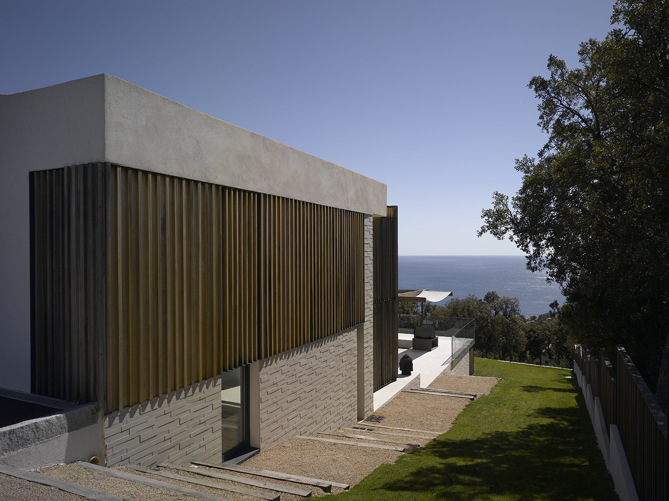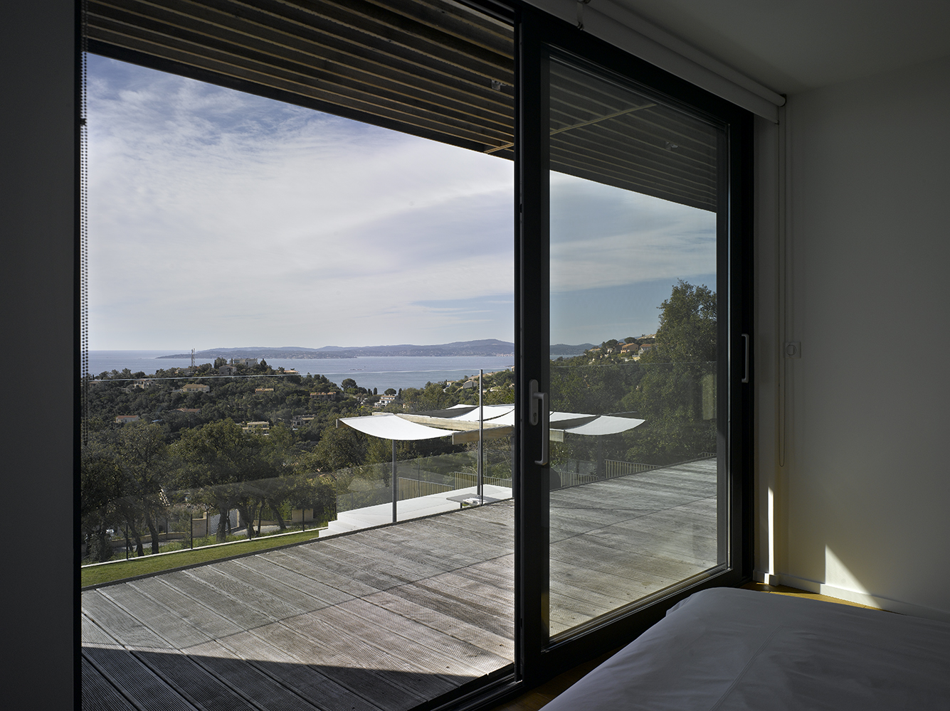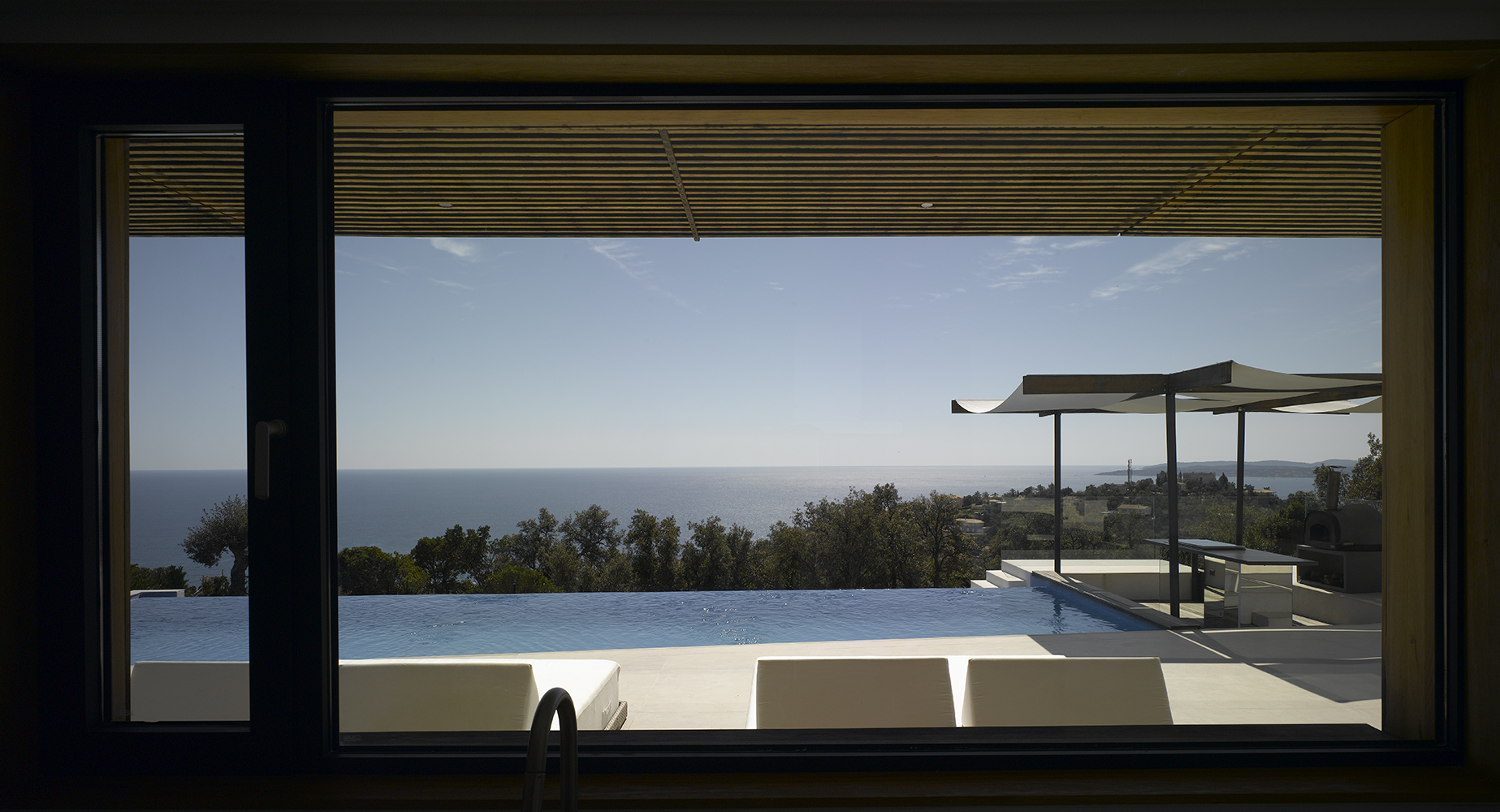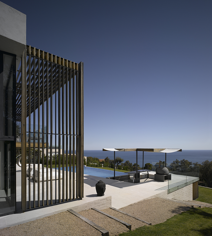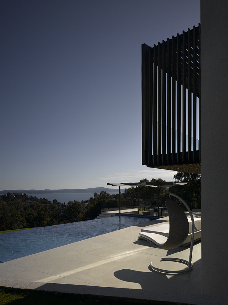 Magnifique villa contemporaine inspirée par les bateaux. Sa position dominante au sommet du village des Issambres offre une vue panoramique sur la Méditerranée.