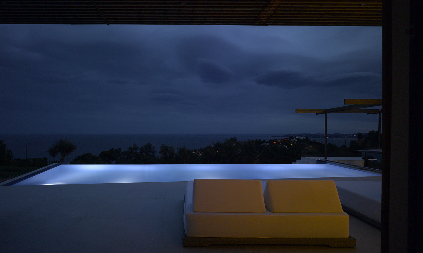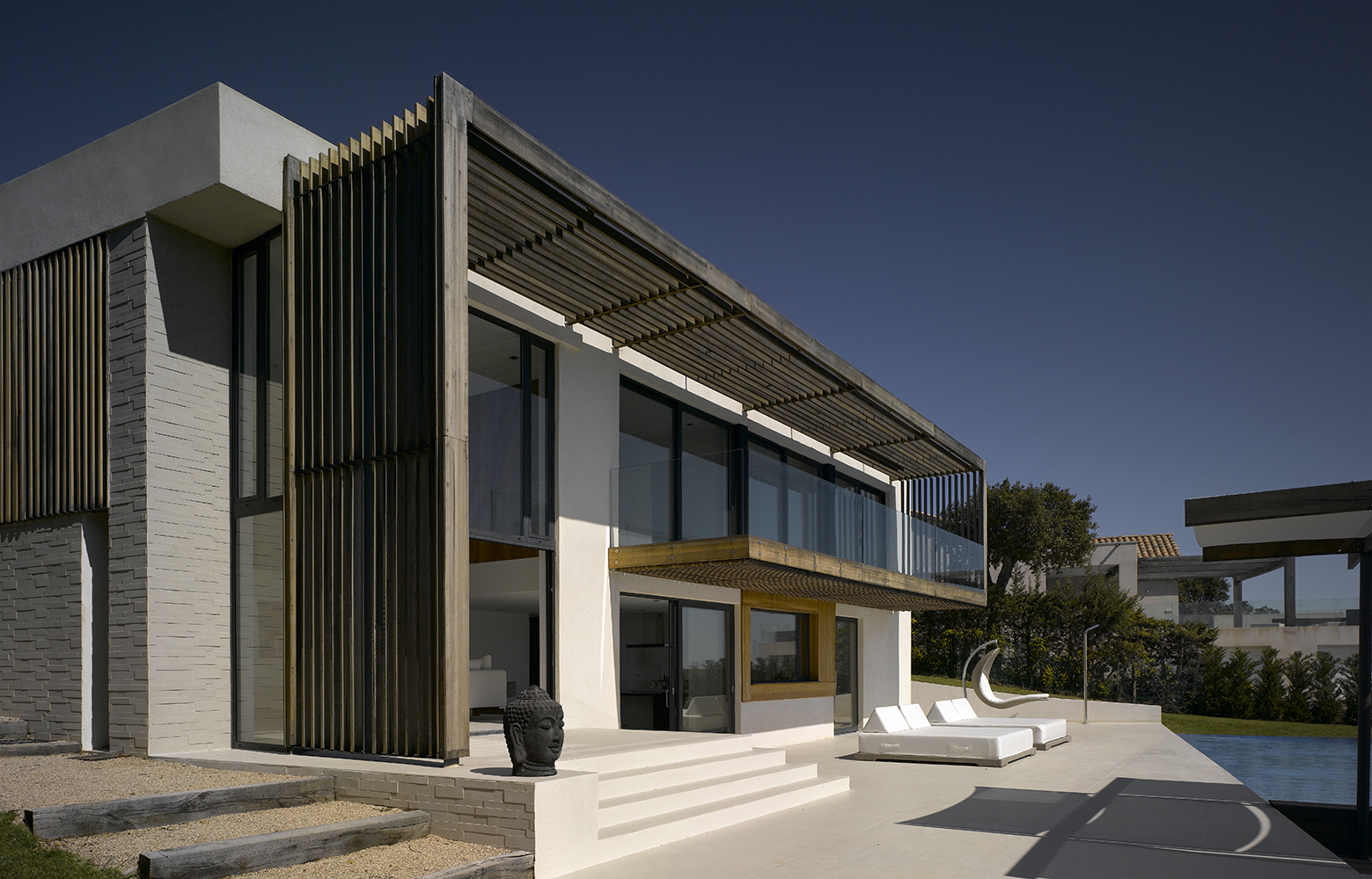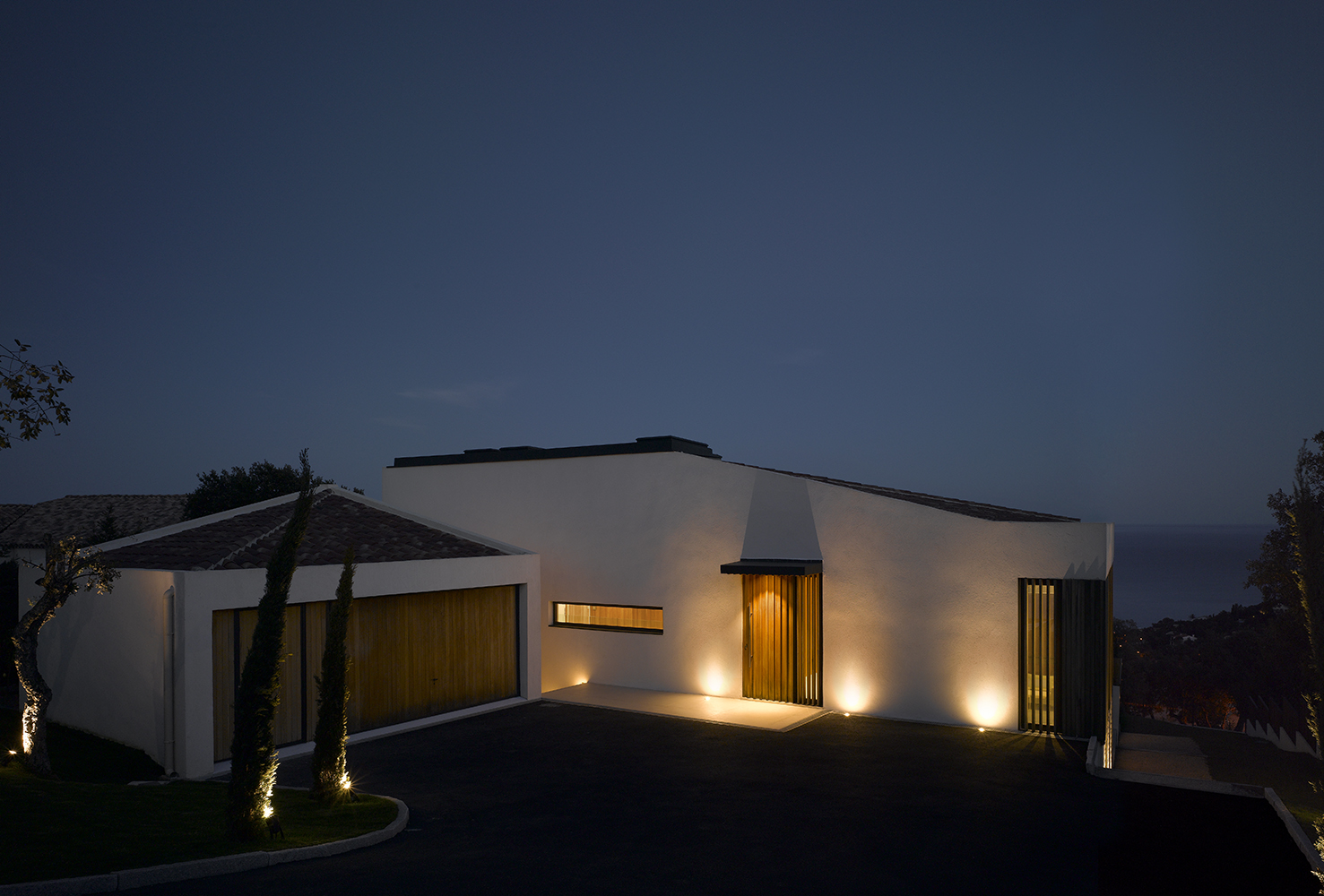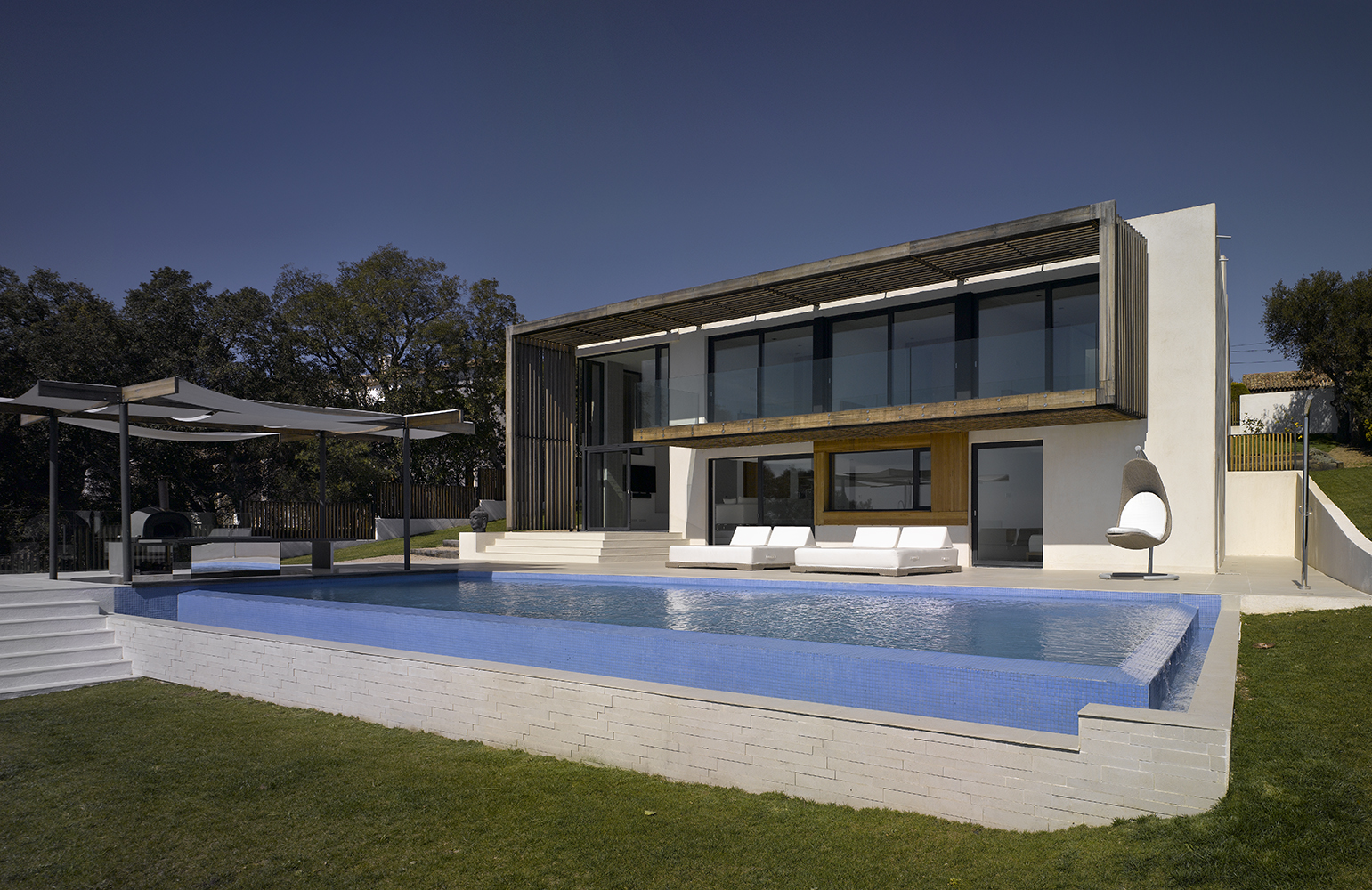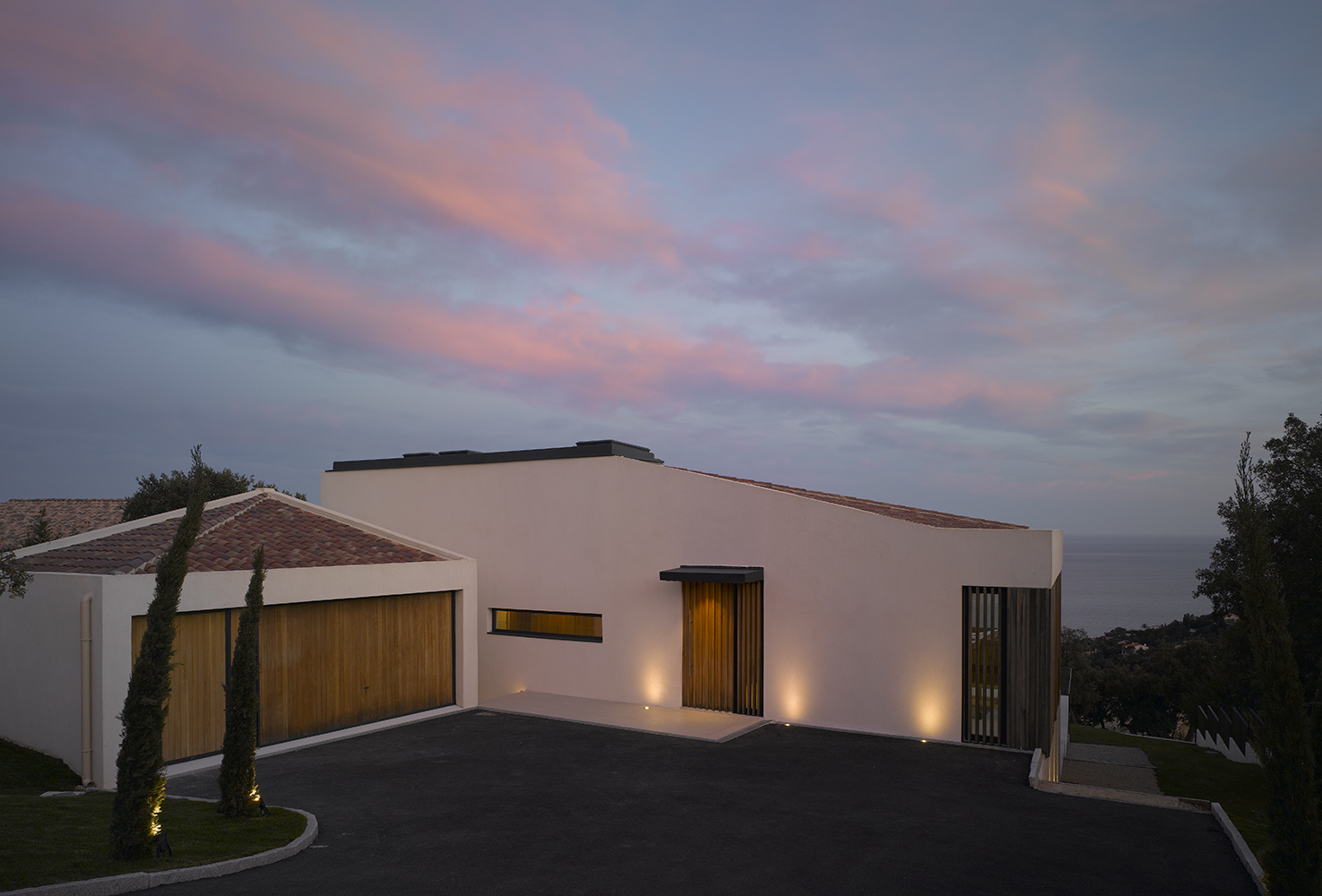 Magnifique villa contemporaine inspirée par les bateaux. Sa position dominante au sommet du village des Issambres offre une vue panoramique sur la Méditerranée.
