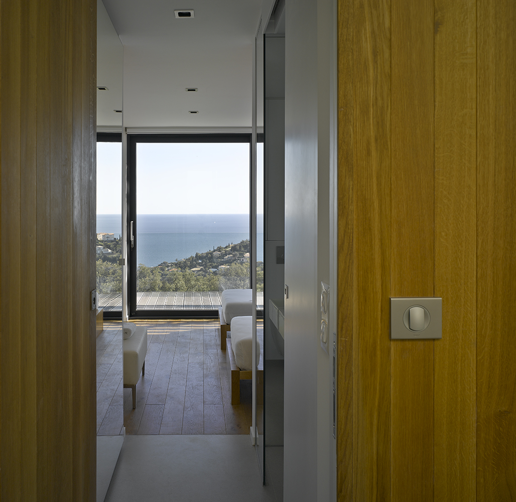 Très spacieuse pour accueillir 8 personnes avec 4 belles chambres en suite avec chacune sa salle de bain, wc. Les chambres situées au niveau supérieur s’ouvrent sur un balcon avec vue mer. De grands espaces vitrés laissent entrer la lumière dans les pièces de vie