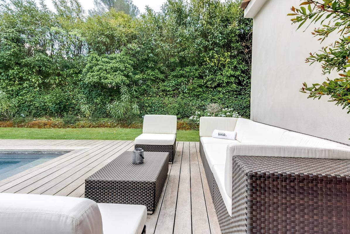 Son emplacement est idéal, à 10 minutes du centre-ville, dans un quartier paisible, entouré de belles villas avec de grands jardins. Le jardin de cette villa s’étend sur 4 000 m2. Bordée d’arbres, clôturée et bordée de haies, elle dispose d’une magnifique piscine privée de 12x4m avec plage submergée et vue dégagée. Il y a une terrasse ombragée en bois pour que vous puissiez dîner à l’extérieur. Un barbecue à gaz est à votre disposition.