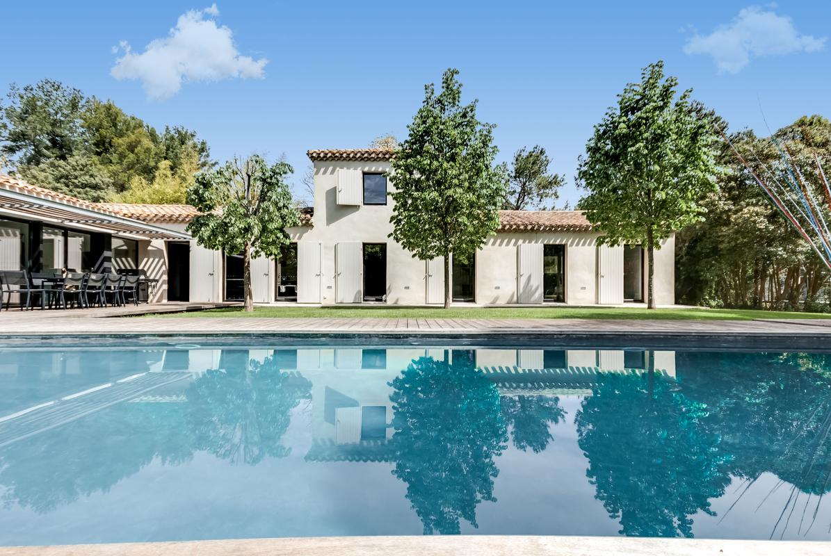 Avec ses tuiles en terre cuite faites à la main, son long bâtiment principal en forme de L et son toit de style génois, cette maison de construction récente possède toutes les caractéristiques d’une maison de campagne provençale. Mais le design et le décor sont résolument actuels, avec toutes les commodités modernes.