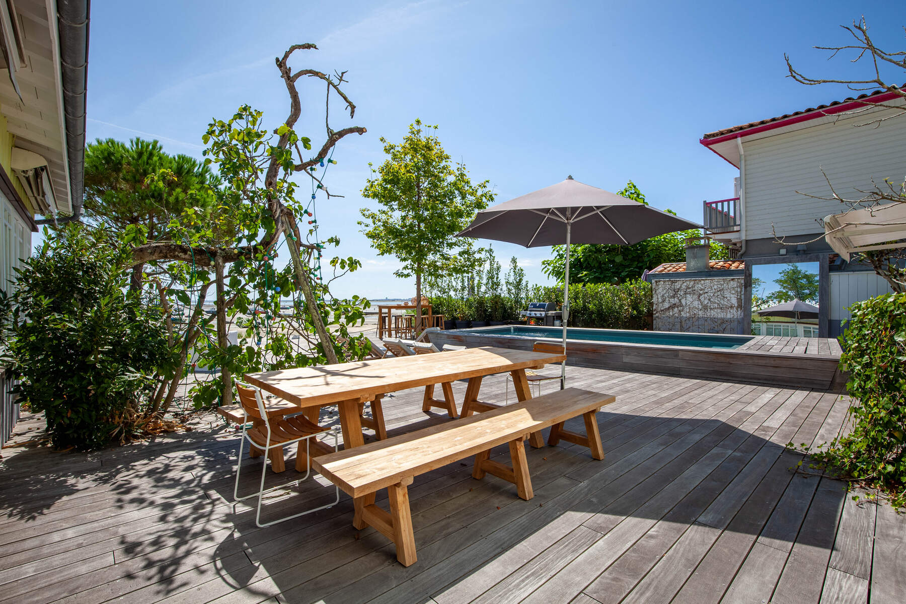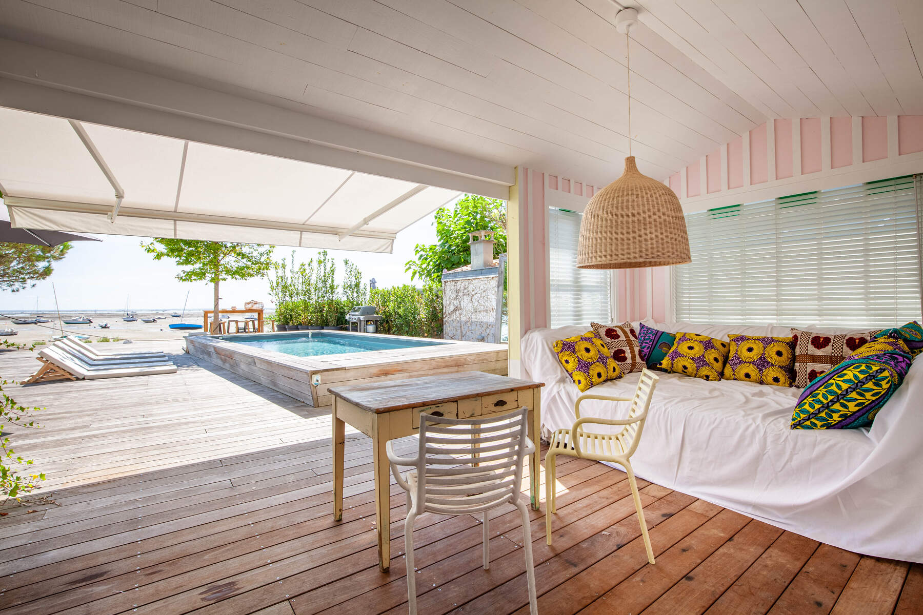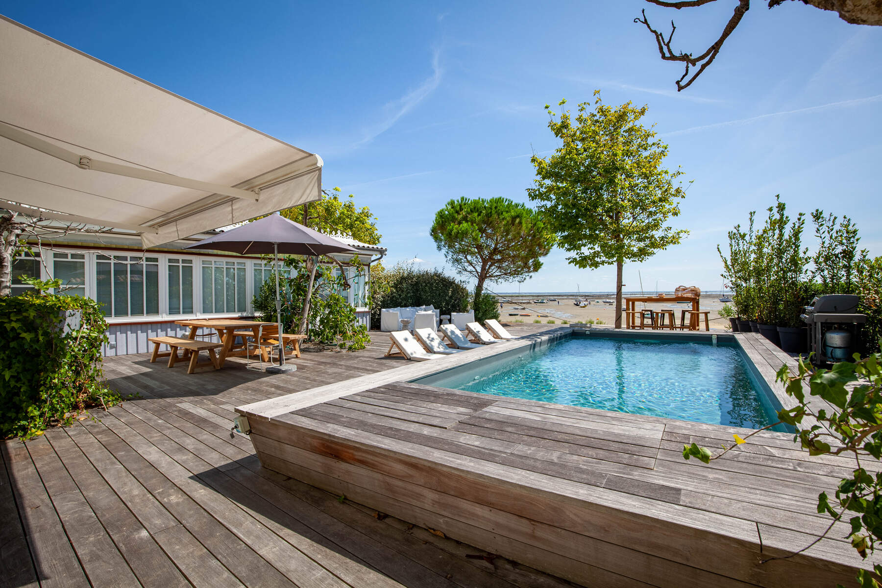 Une piscine chauffée et des transats tout autour, de l’espace bien pensé pour cette Villa de Pêcheurs pieds dans l’eau. Un luxe qui fait du bien pour des vacances bien méritées.
