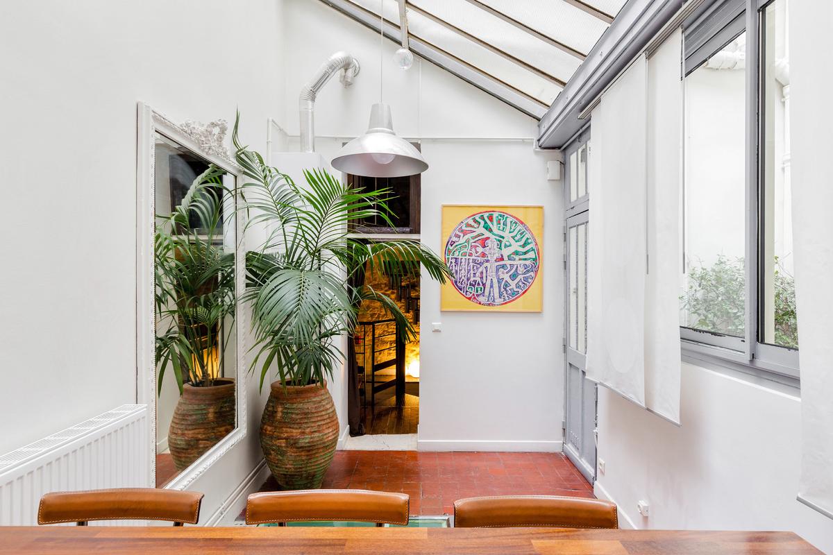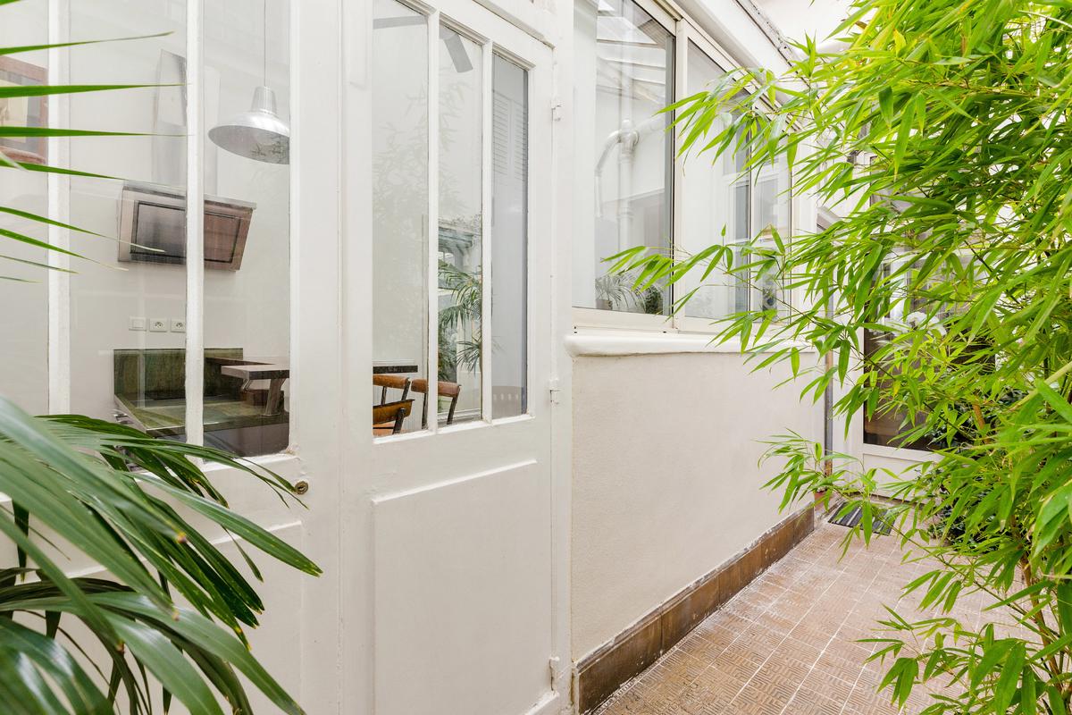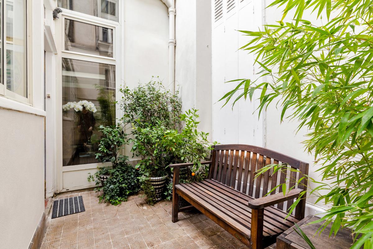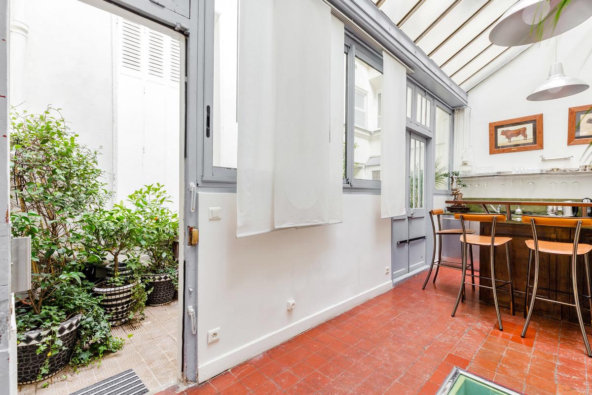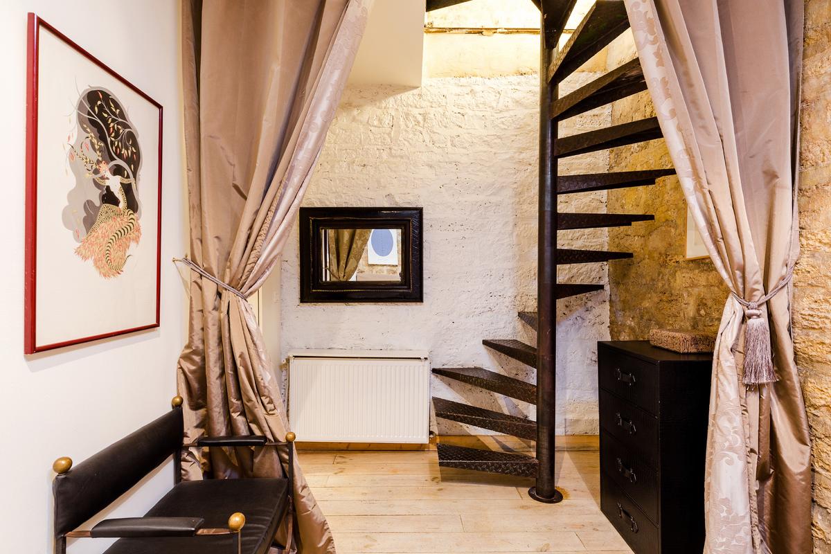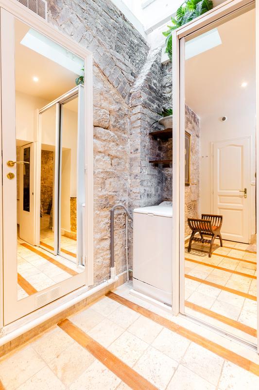 L’immeuble est situé sur le Quai Bourbon de l’Ile Saint Louis, l’une des adresses les plus prestigieuses de Paris, et sans aucun doute un emplacement de choix au centre de la capitale. Vous entrez dans le bâtiment par une magnifique entrée carrosserie. L’appartement se trouve au bout d’une petite cour privée avec banc et plantes.