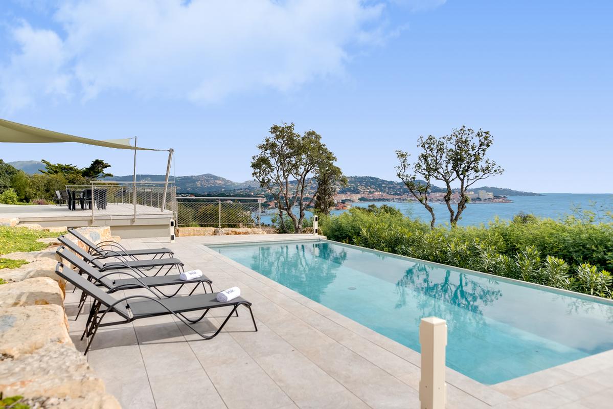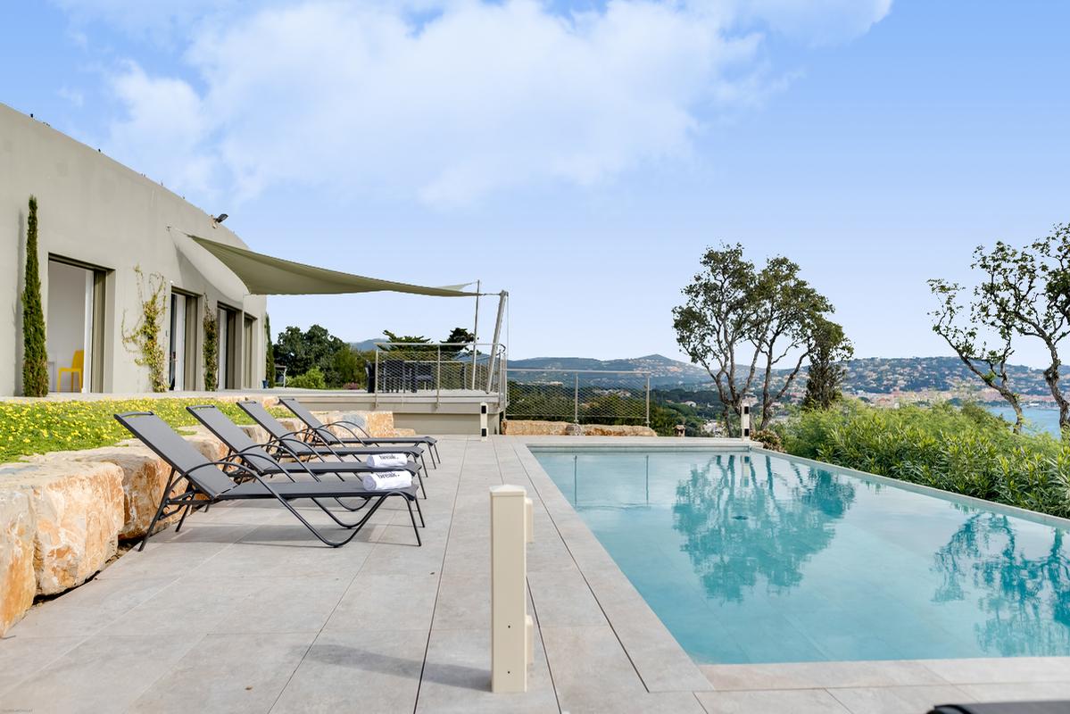 – La belle piscine à débordement offre un point de vue unique sur la côte, Saint Tropez et Saint Maxime.