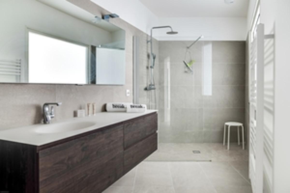 – Un ascenseur descend du parking jusqu’à la maison, pratique pour les bagages et les courses, ou pour les personnes à mobilité réduite, qui sont les bienvenues ici. L’une des salles de bains a une douche et un lavabo accessibles.