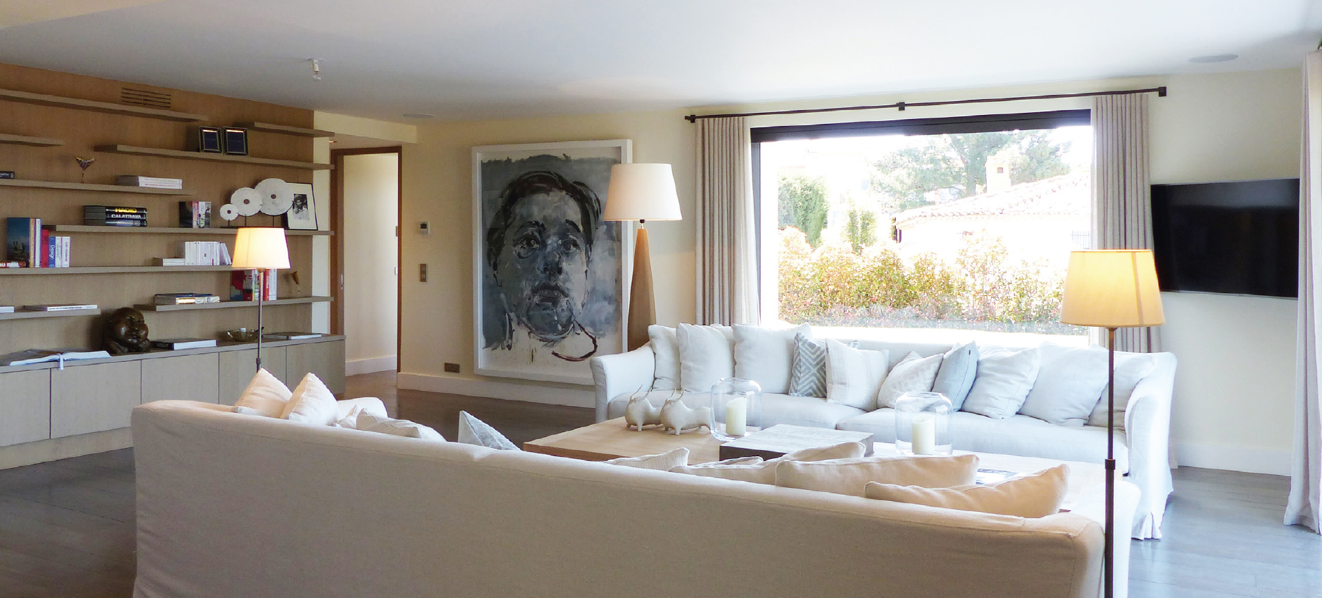 Premier étage/grand salon avec portes coulissantes donnant sur les terrasses (couvertes), cuisine ouverte avec bar.