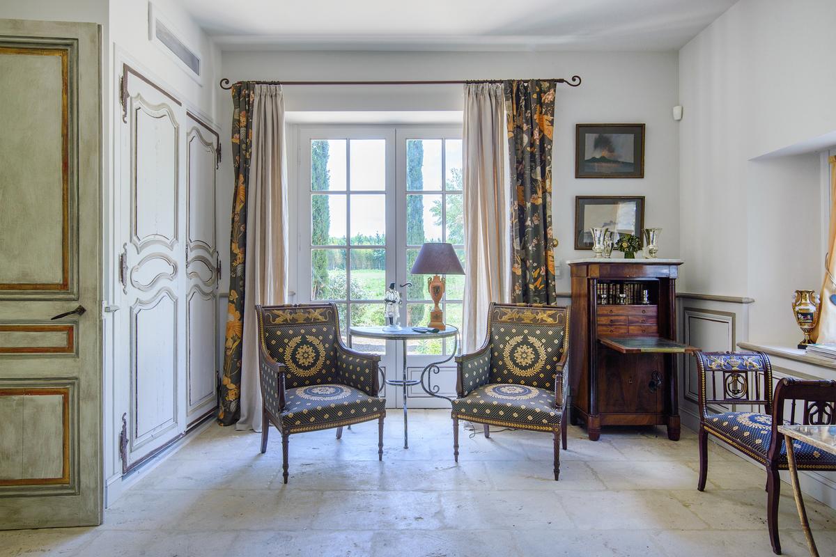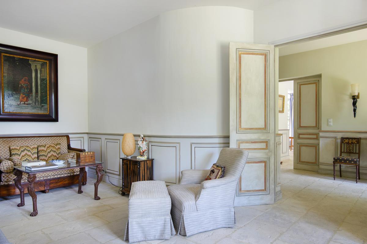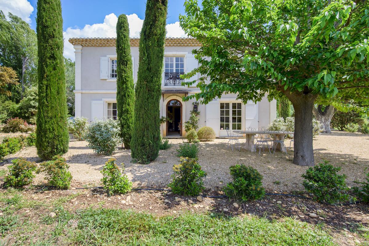 Cette superbe maison de campagne est située dans les Alpilles, l’une des régions les plus prisées de Provence : c’est au cœur d’une grande propriété, dans un environnement remarquablement paisible et un endroit parfait pour se ressourcer. Une grande piscine de 18x6m, un jardin magnifiquement entretenu, une terrasse à l’ombre des platanes vénérables, sans oublier le chant des cigales….bref, un cadre provençal authentique. La maison a 4 chambres à coucher, dont trois sont ensuite, tandis que le bureau au rez-de-chaussée peut accueillir 2 personnes supplémentaires si nécessaire. Une maison au charme incroyable, où chaque pièce est conçue avec une attention particulière aux détails : un style élégant et sophistiqué, classique mais avec une touche d’originalité, tant dans l’ameublement que dans les objets décoratifs. Tous les attributs d’une vraie maison de campagne provençale. Mise en page: