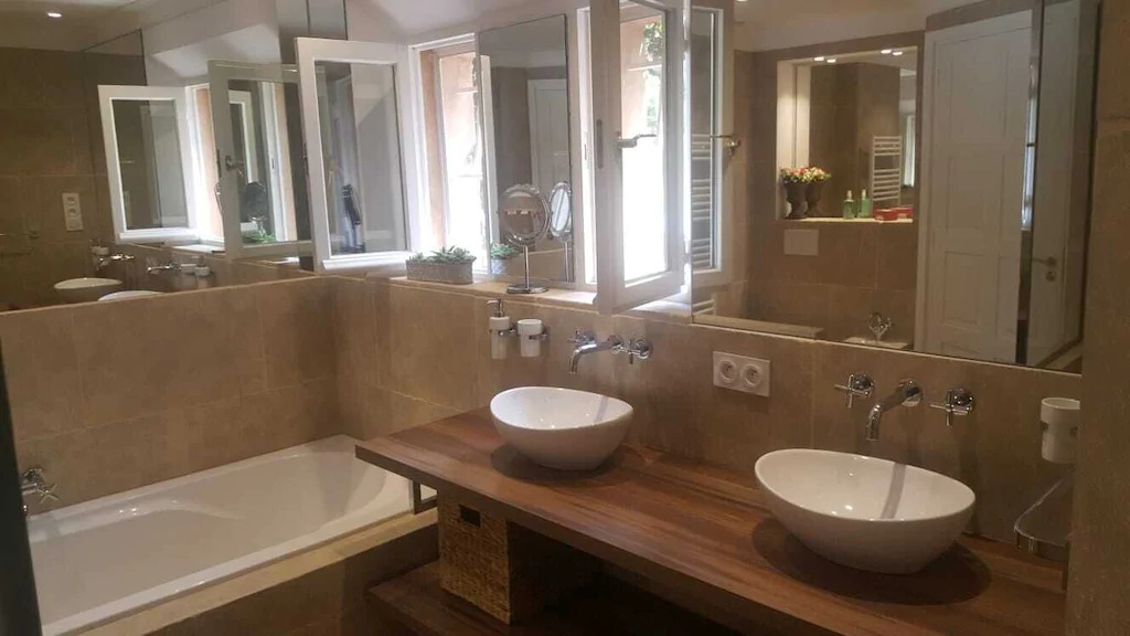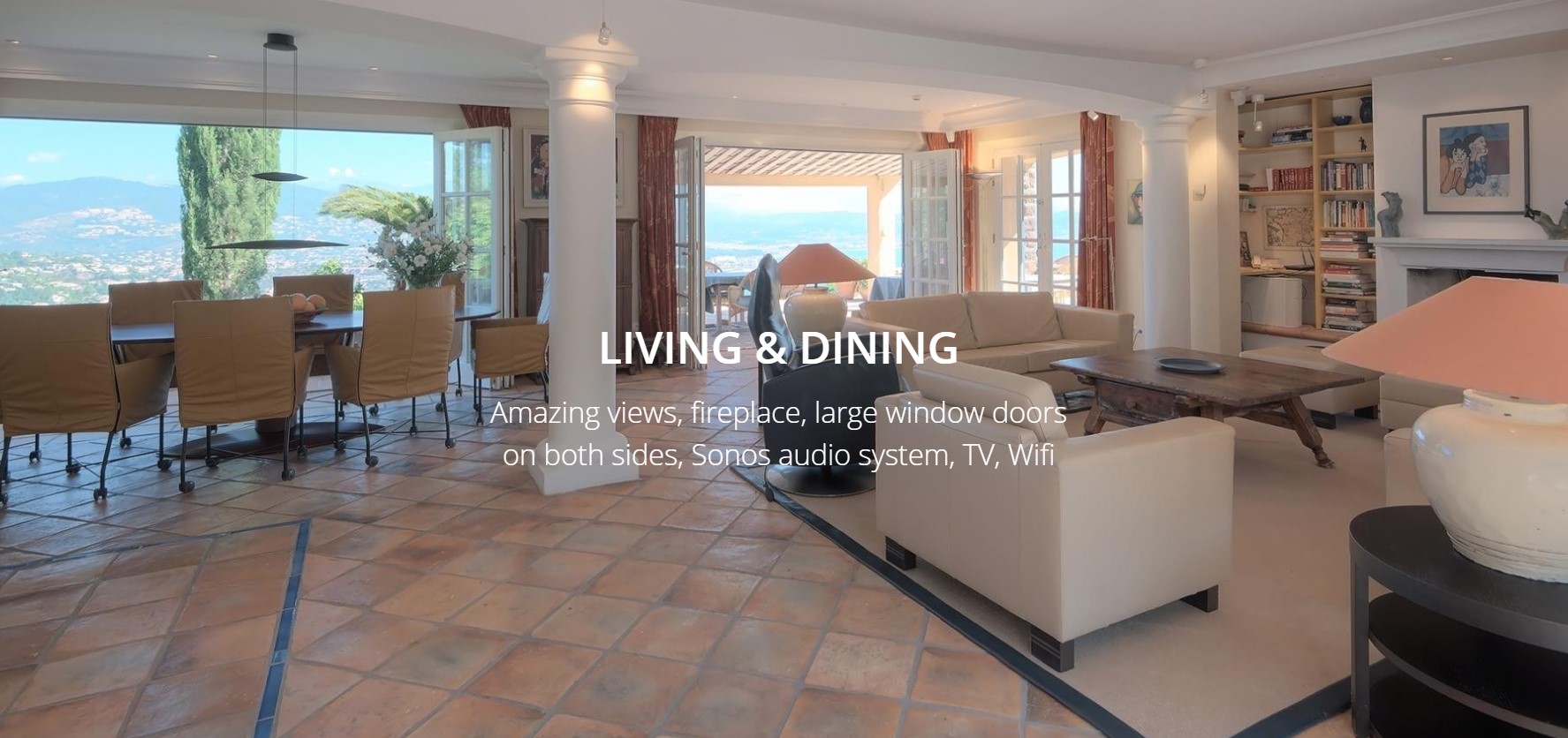 Une villa de 300 m² conçue pour 8 personnes avec lits supplémentaires, si besoin jusqu’à 12 personnes en transformant un bureau bibliothèque en chambre. La cuisine est équipée en professionnel avec 2 machines à café, grand frigo et tous les ustensiles nécessaires. Le salon, séjour très grand avec cheminée et de grandes baies vitrées.