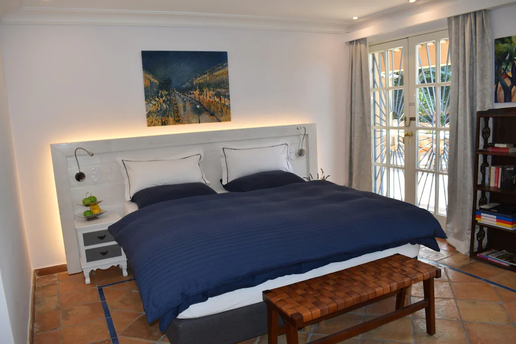 Cette villa au sommet de la colline qui domine le port de Théoule sur Mer, étonnante avec une vue panoramique spectaculaire. En effet, vous admirez la baie de cannes et les iles de Lérins face à vous. Puis, en toile de fonds sur le bleu de la méditerranée une farandole de bateaux blancs nous donne l’impression d’un tableau de Maître.