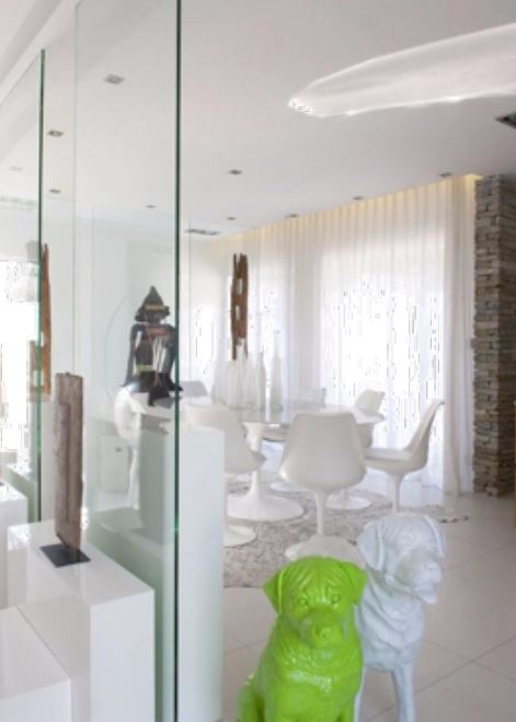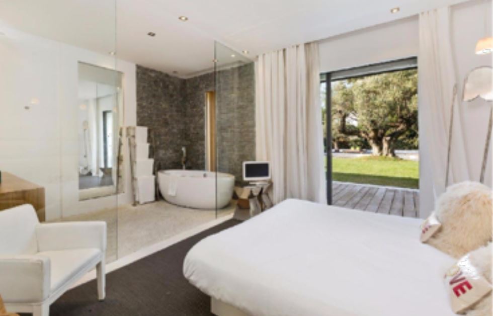 Dans l’aile gauche, quatre chambres doubles avec dressing, salle de bain et toilettes en suite. Puis, une cinquième qui est une très belle suite avec un bassin de nage personnel et une terrasse personnelle. Ensuite, au sous-sol, 2 autres chambres avec salle de douche pour l’une et salle de bain pour l’autre. Toilettes et espace bureau pour chacune. Egalement, une chambre de service pour le staff et une buanderie.