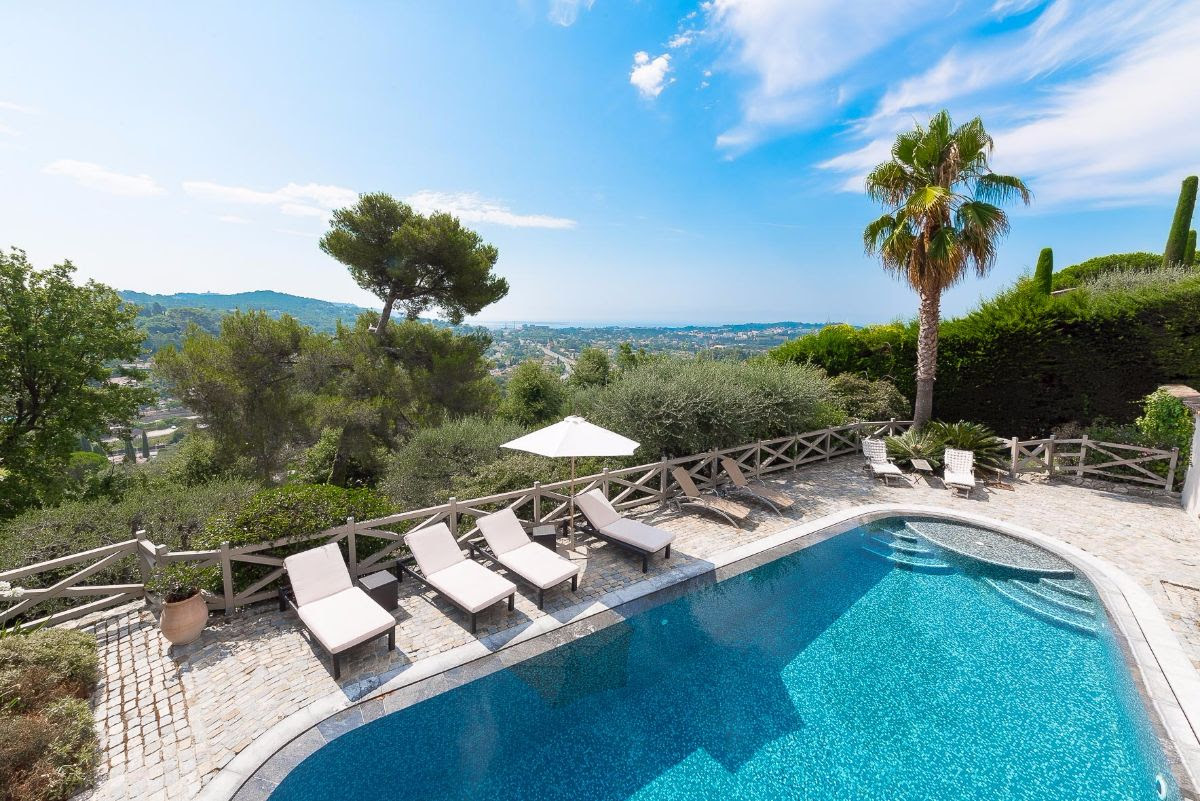 Au pied du village de Mougins, belle propriété avec vue sur la mer. Cette villa de 4 chambres, décorée et meublée avec gout. De grands espaces en extérieur pour accueillir les familles. La vue panoramique sur la mer et sur la baie de Cannes et Mandelieu est magnifique.