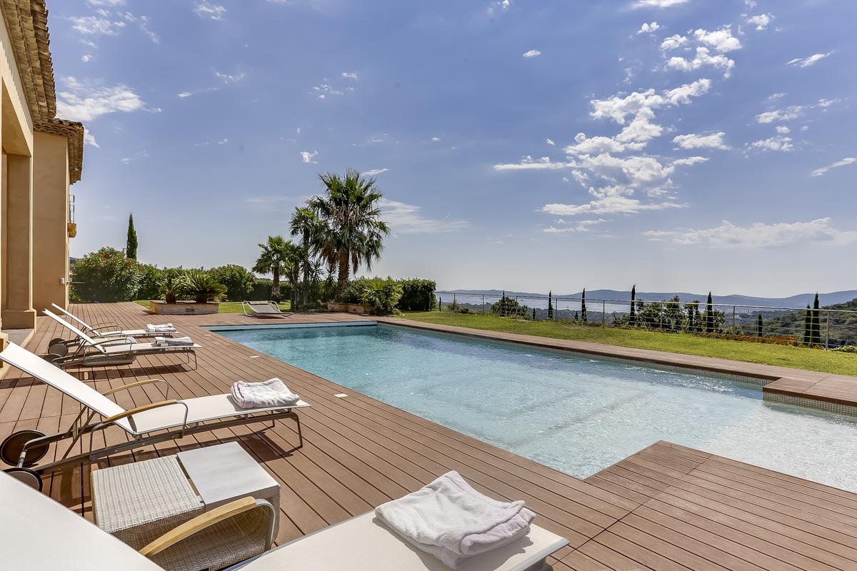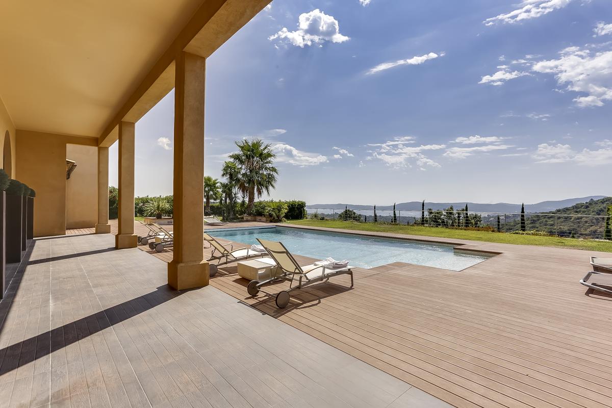 Les hauteurs de Grimaud dominent le golfe de Saint-Tropez, offrant une vue imprenable sur la côte méditerranéenne. Les villas de rêve sont nichées parmi les collines boisées et luxuriantes, toutes avec la même vue à couper le souffle. C’est l’une de ces villas que vous faites vôtre lors d’un séjour unique dans le calme et la beauté. Chaque détail et commodité respecte le luxe et l’unicité de cette villa : héliport, parc paysager de 5000m2 assurant une intimité totale, et piscine de 12x7m, face à la vue, juste au pied de la terrasse. Il y a beaucoup d’endroits pour se détendre, y compris un patio lounge de style marocain où vous pouvez prendre un verre et bavarder tard dans la nuit, dans les lumières de la baie.