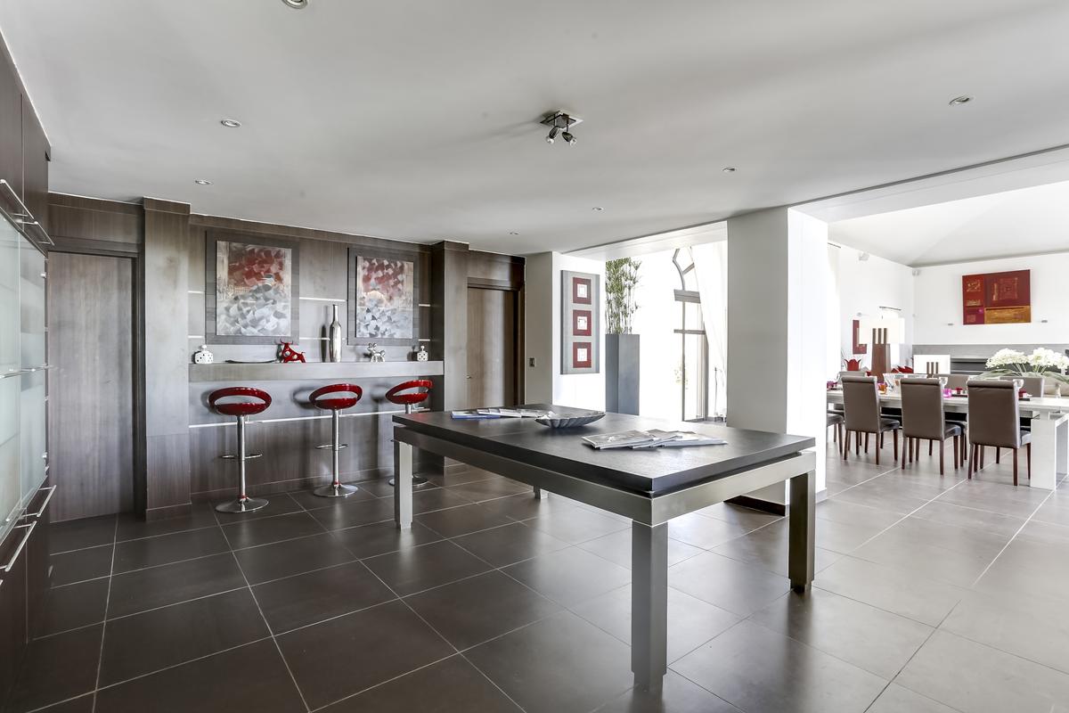 Un espace ouvert de plus de 200m2 abrite le salon, la salle à manger et la cuisine, avec une salle de billard.