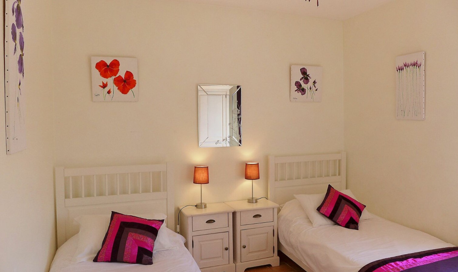 A l’étage se trouve les trois autres chambres doubles avec salle de bain ou douche et wc. En fait, 2 belles terrasses sont à l’étage pour pouvoir vous détendre en toute quiétude.