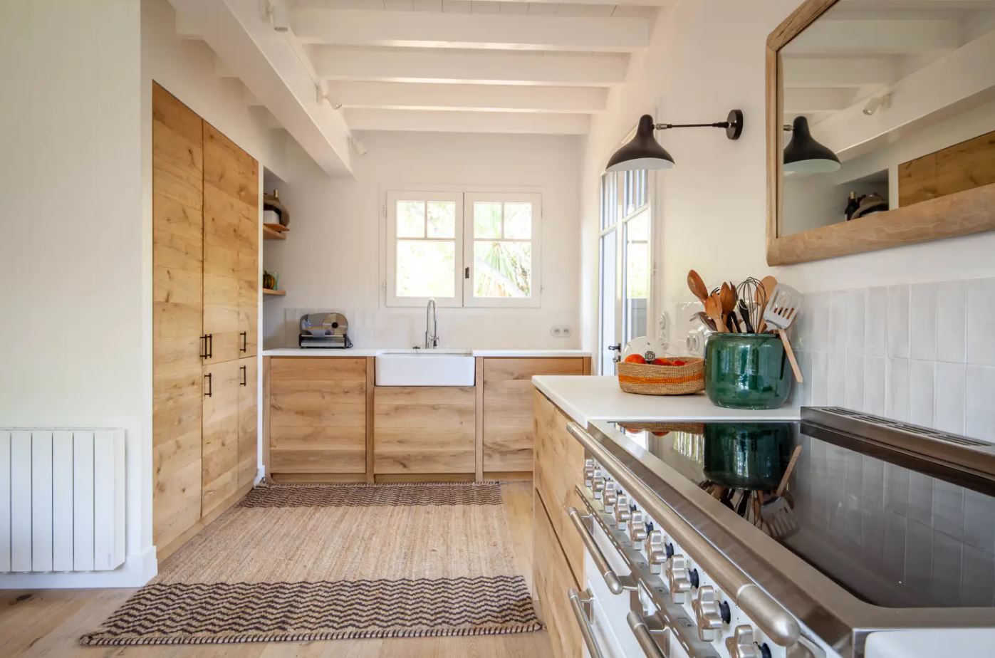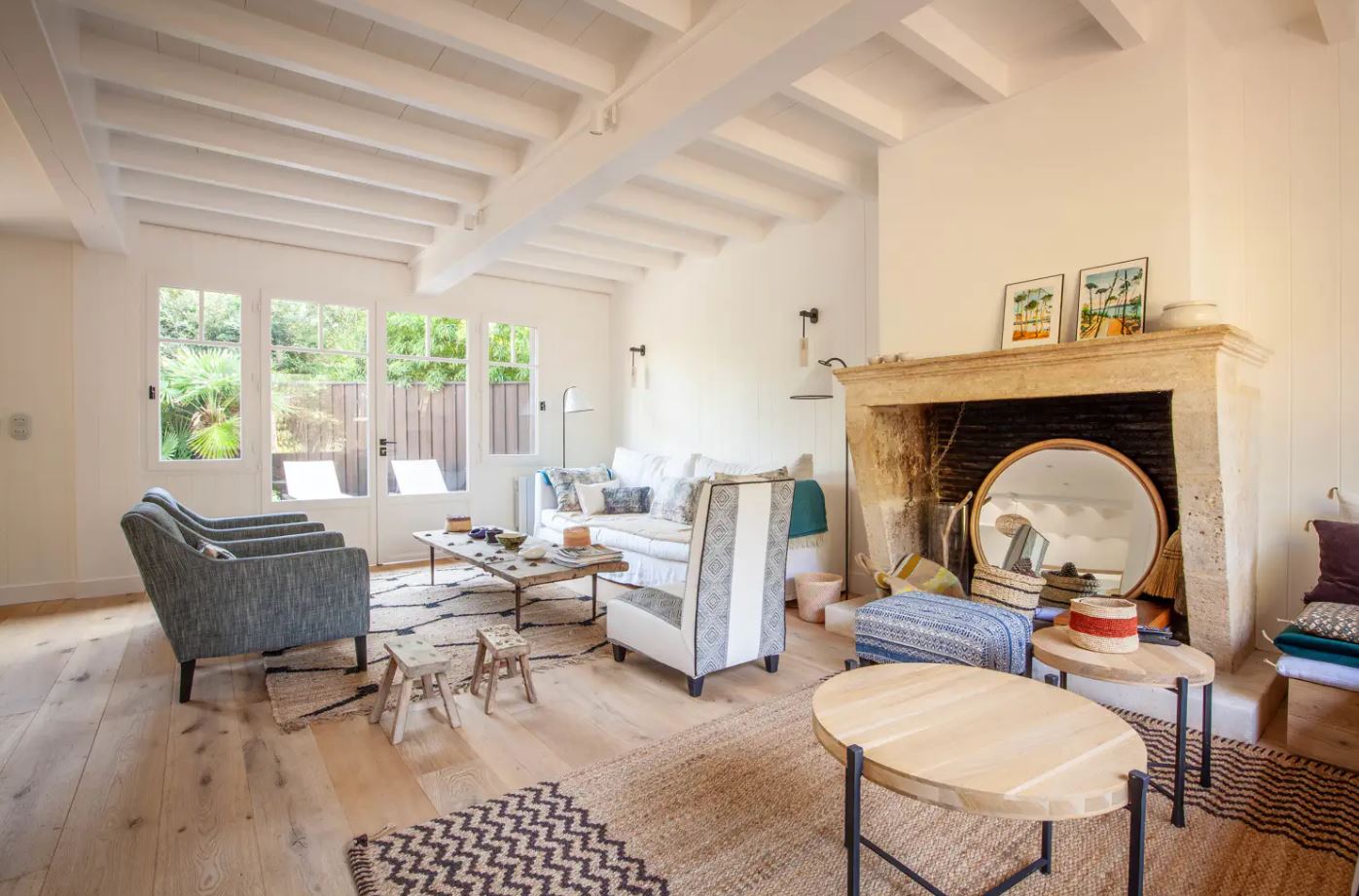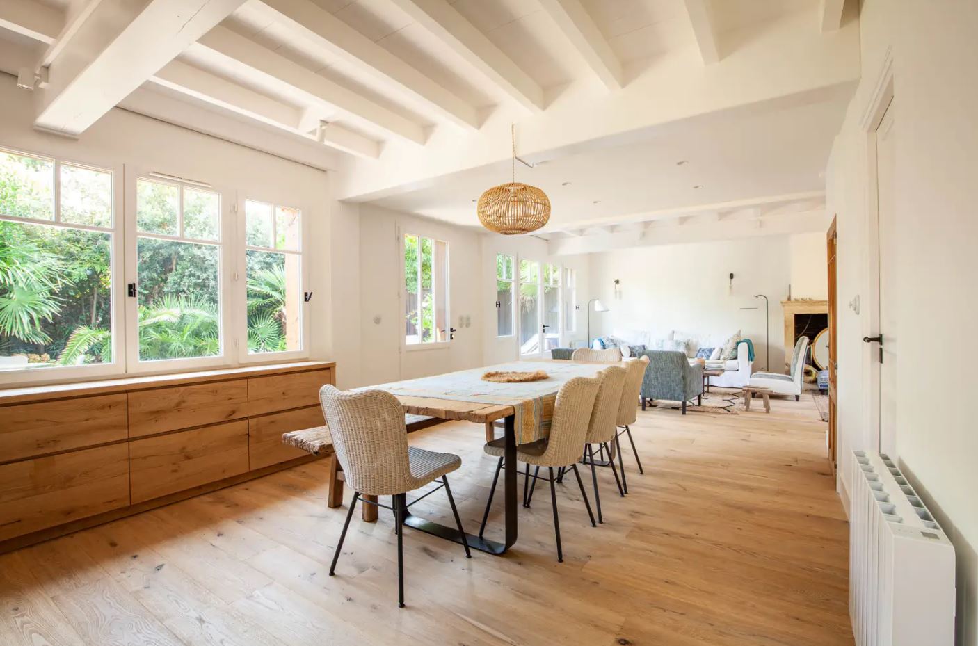Des pièces de vie très spacieuses, un salon séjour avec cheminée. Puis, un belle cuisine entièrement équipée, ouverte sur la salle à manger. La table est parfaite pour les 10 convives.