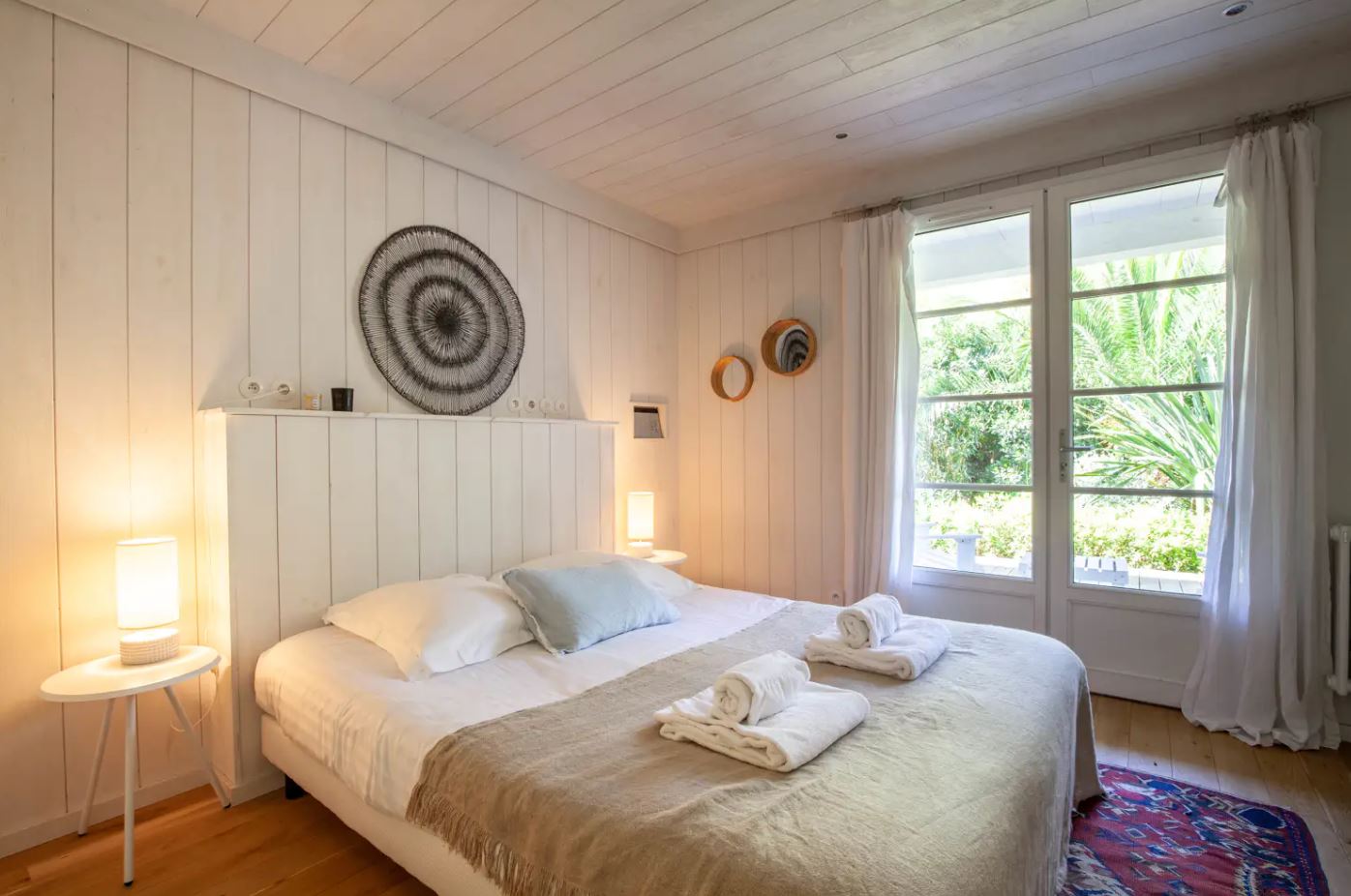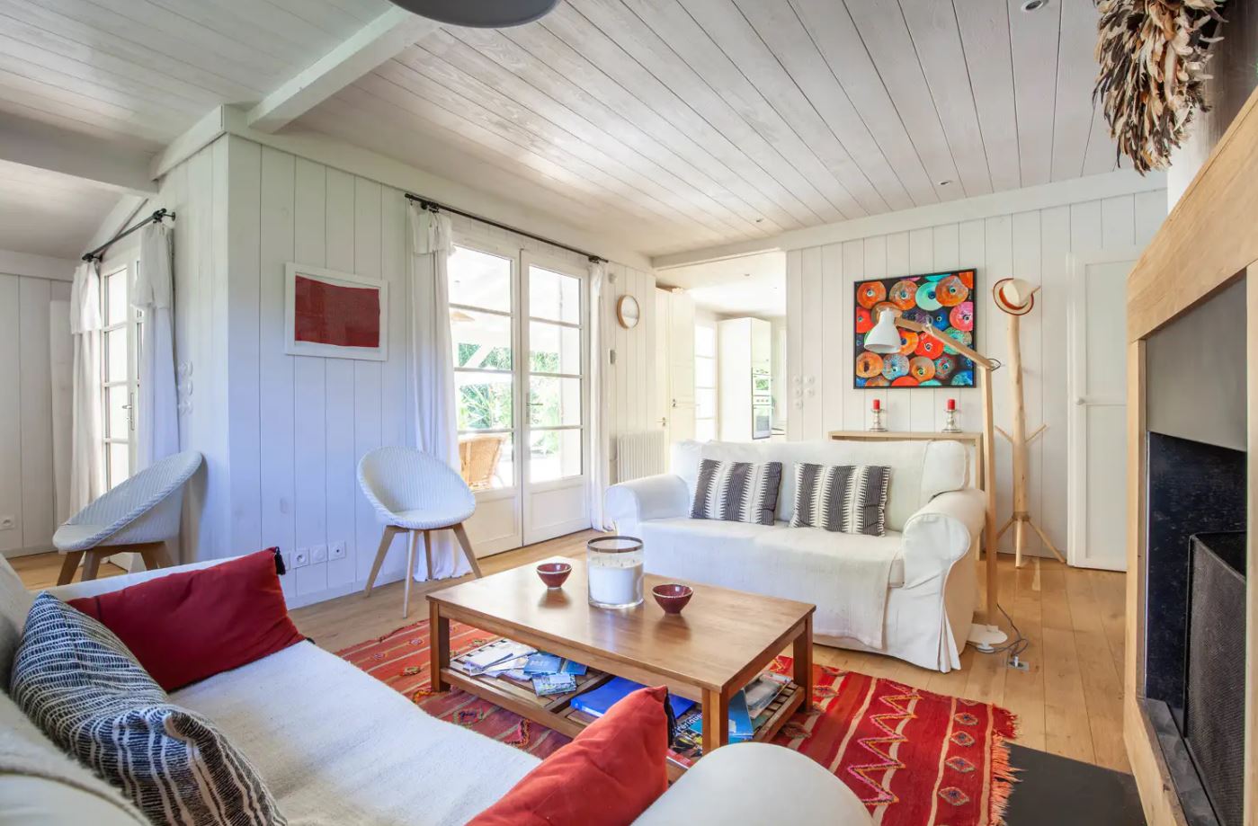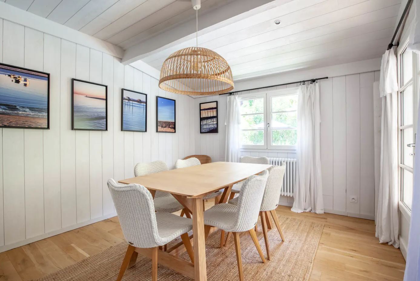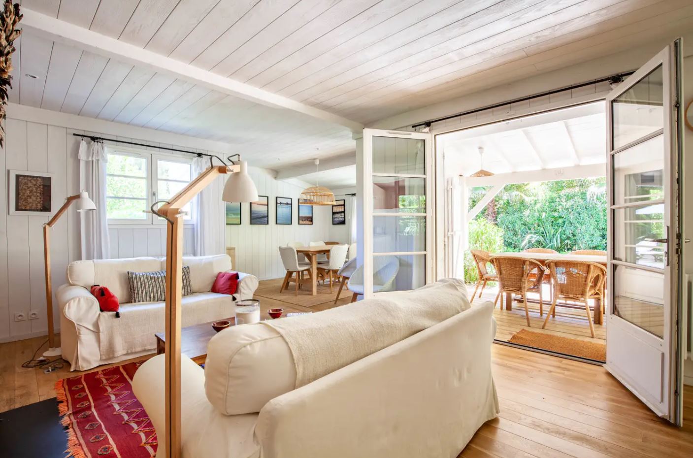 La villa est très bien agencée, avec ses 5 chambres et 4 salles de bain. Les pièces de vie sont spacieuses et décorées dans un esprit cosy. Un salon, salle à manger avec de beaux canapés pour tous. En effet, la table de la salle à manger est parfaite pour les 10 convives. Puis, la cuisine entièrement équipée est semi ouverte ce qui permets de cuisiner en toute tranquillité. Un parking pour les voitures et une buanderie complètent les prestations.