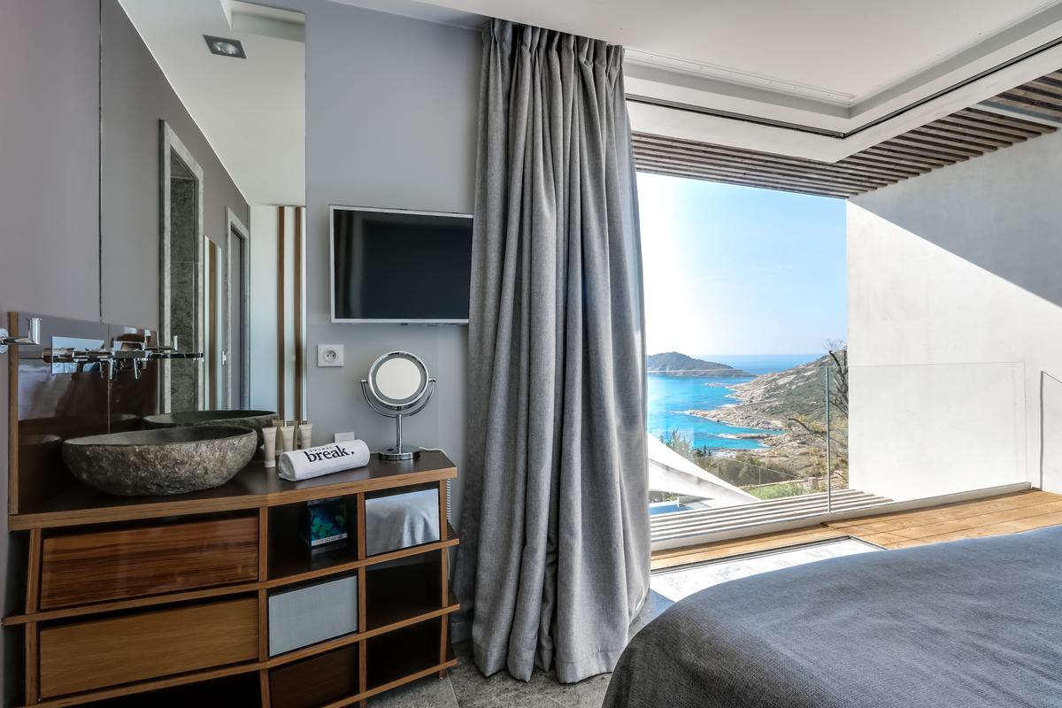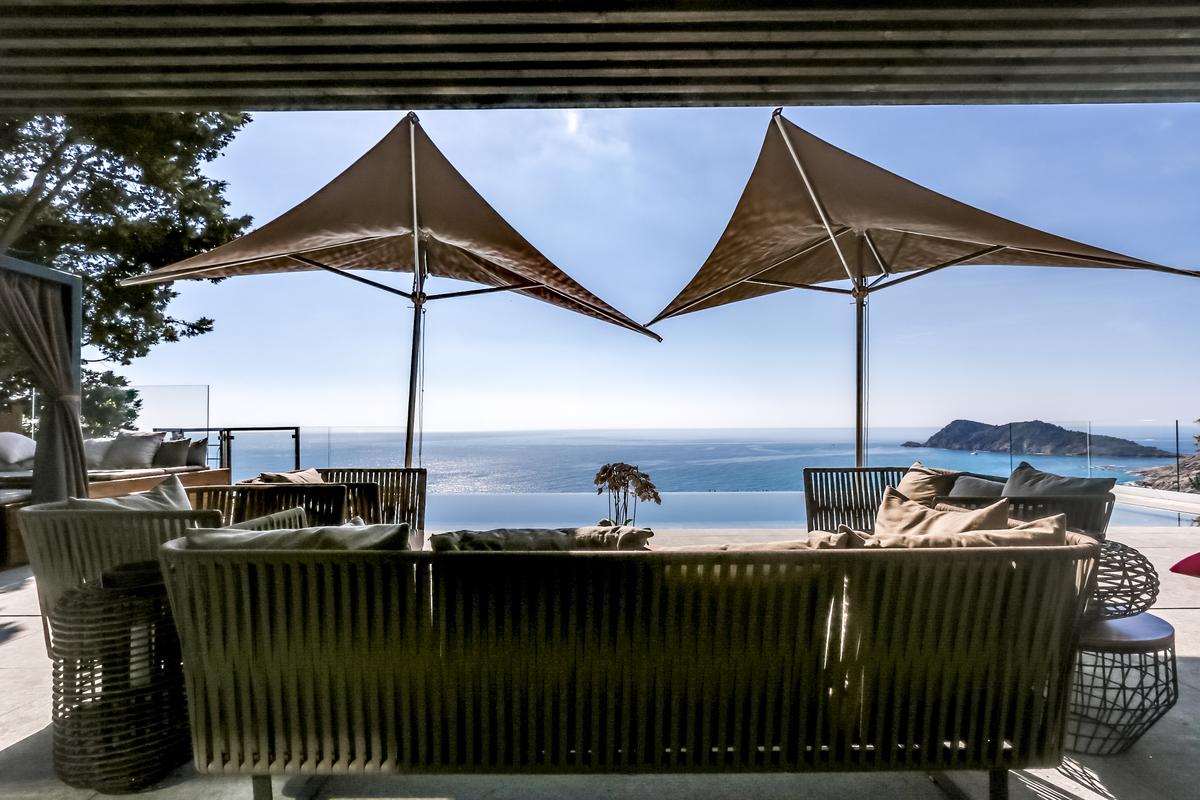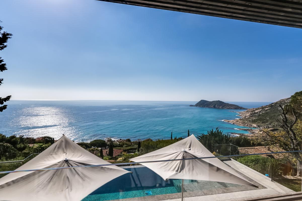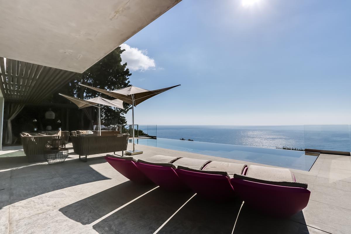 Le cadre est tout simplement éblouissant. Rien ne bloque la vue : vous êtes seul face à face avec la Méditerranée ! La piscine à débordement semble plonger dans la mer, reflétant le ciel azur de la Côte d’Azur. Et pour admirer la vue de jour comme de nuit, d’immenses baies vitrées dans le salon et les chambres à coucher, dont trois avec vue sur la mer, relient l’intérieur aux terrasses extérieures confortablement meublées. Vous pouvez déjeuner ou dîner sous la pergola équipée d’un barbecue et d’un chauffage.