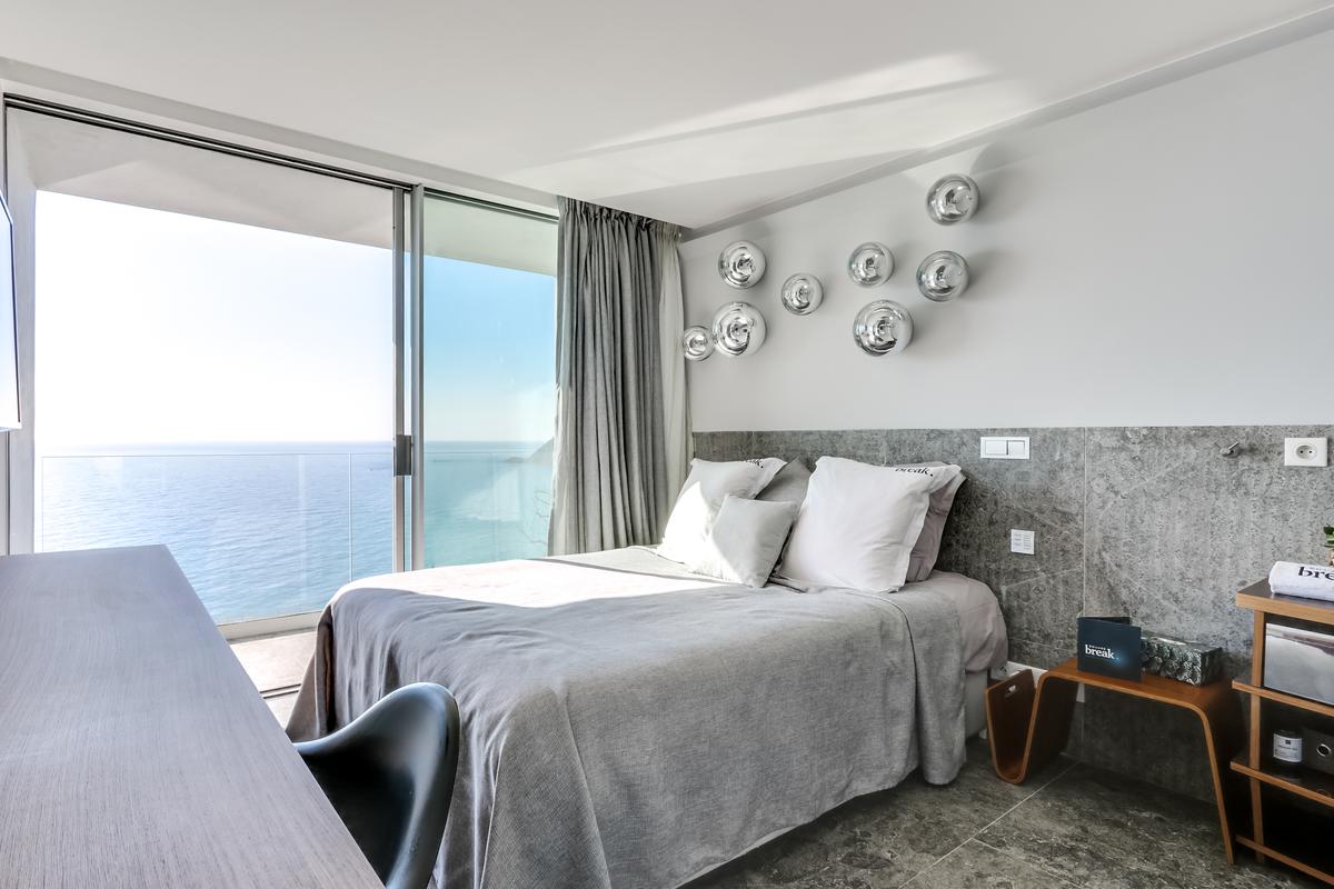– Chambre 5 : grand lit queen, salle de douche attenante – douche et toilettes, vue mer
