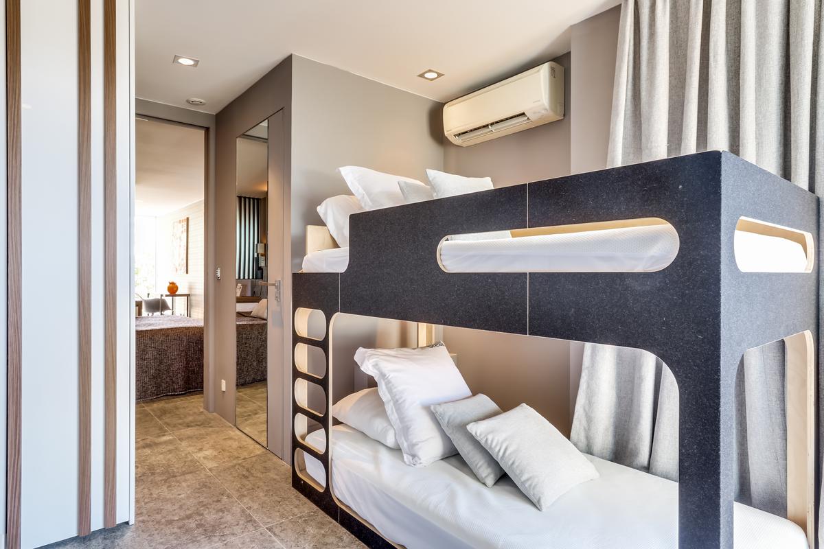 – Chambre 3 : chambre d’enfant avec lits superposés de 90 cm, salle de bain partagée avec la chambre 2