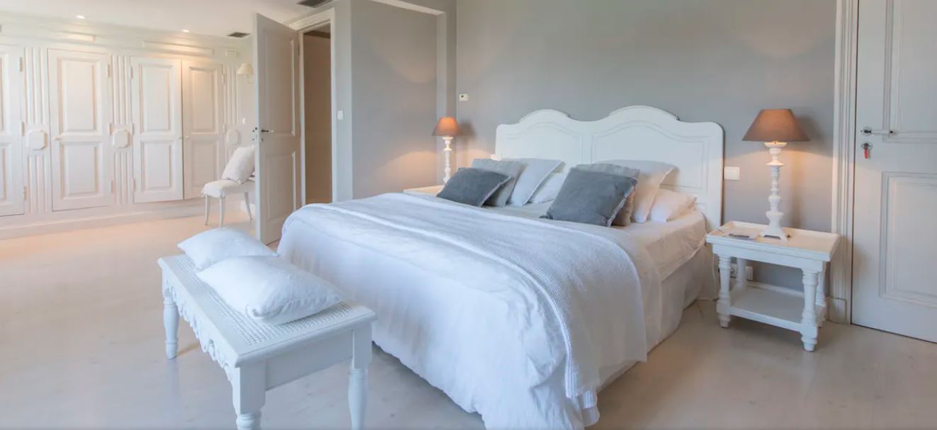 Les chambres sont à l’étage que l’on rejoint par le grand escalier. Nous retrouvons 5 belles chambres avec 5 salle de bains en suite. 5 wc pour garantir l’intimité de chacun.