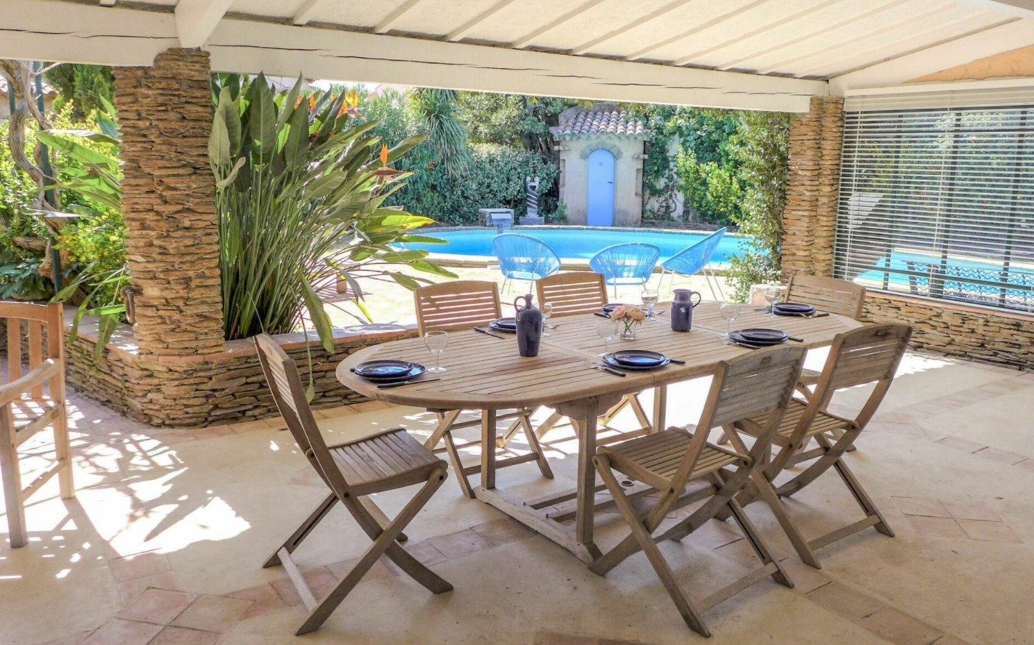 De plus, les terrasses et la plage piscine sont bien aménagés avec du mobilier de jardin fonctionnel et très confortable.