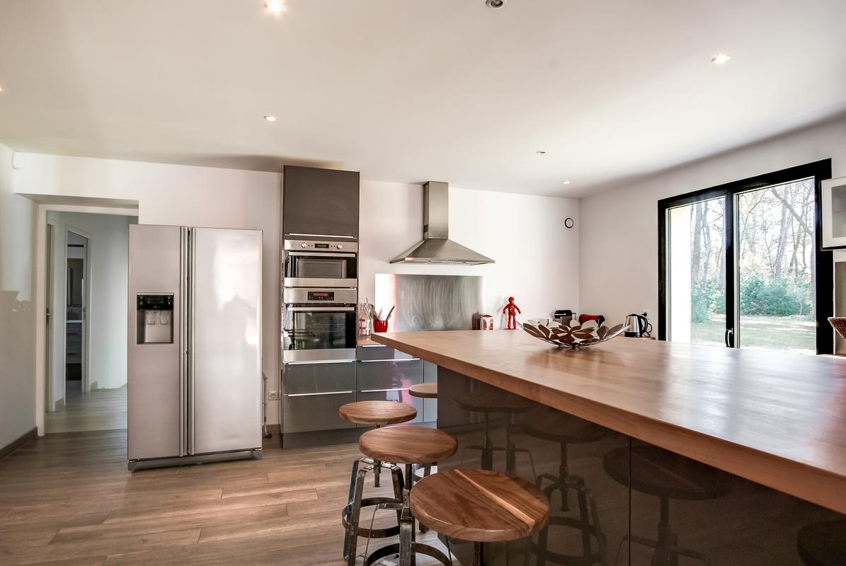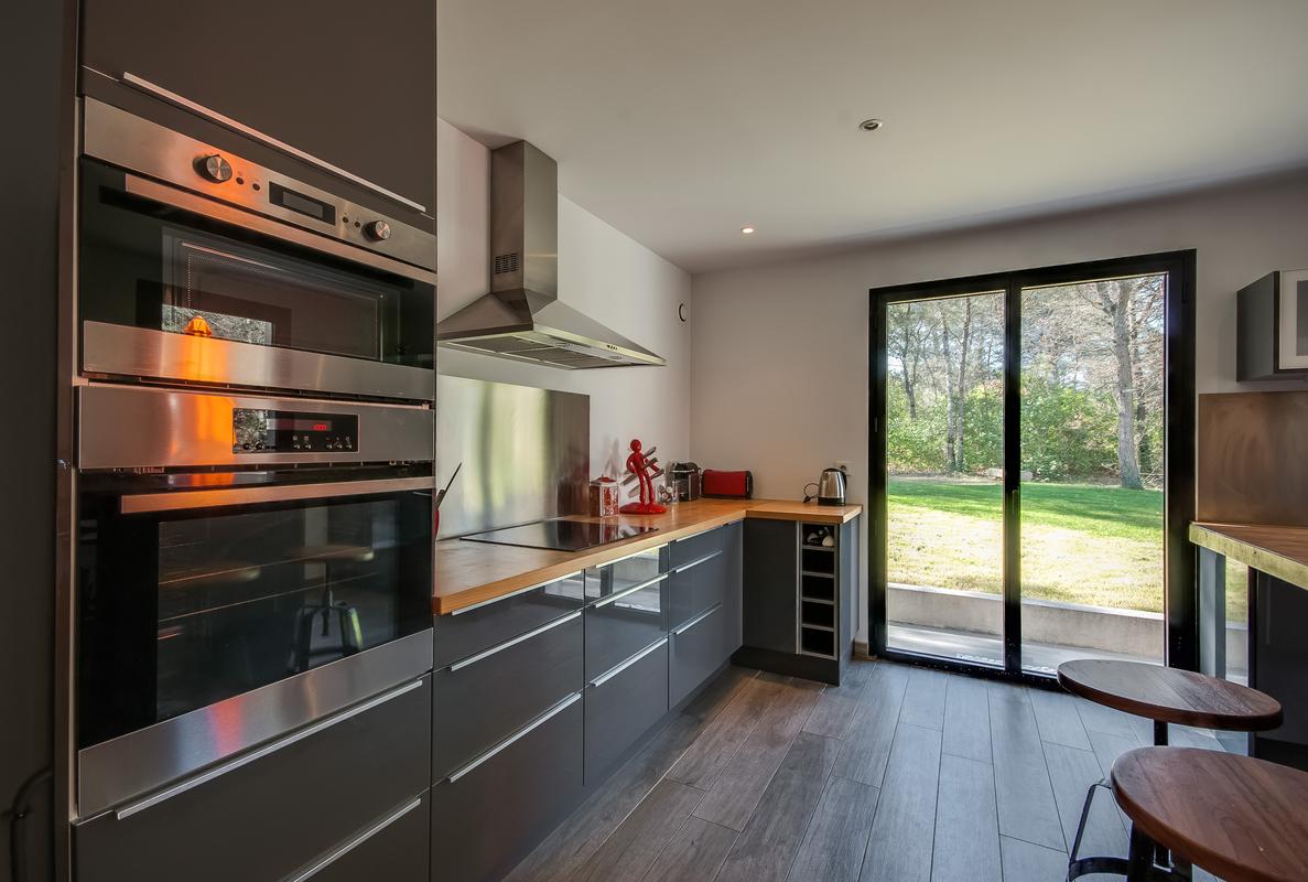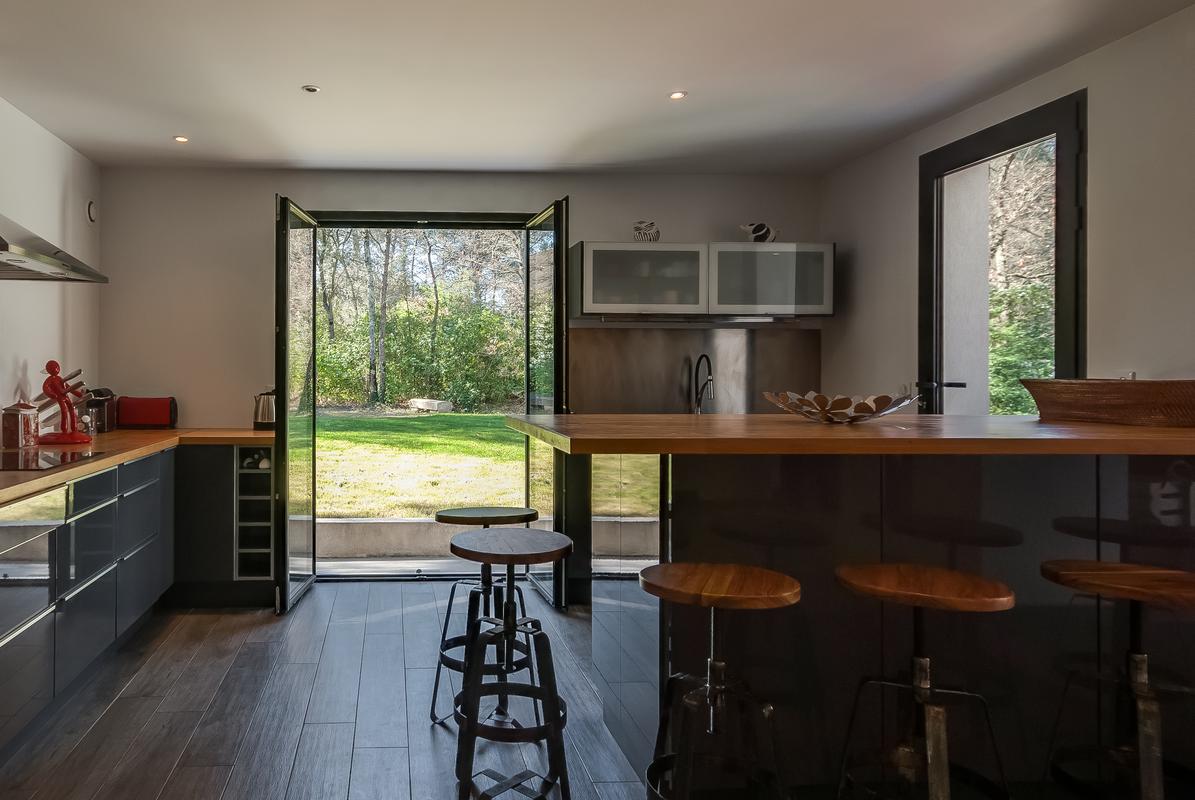 – Cuisine avec accès direct à la terrasse, et petit déjeuner bar