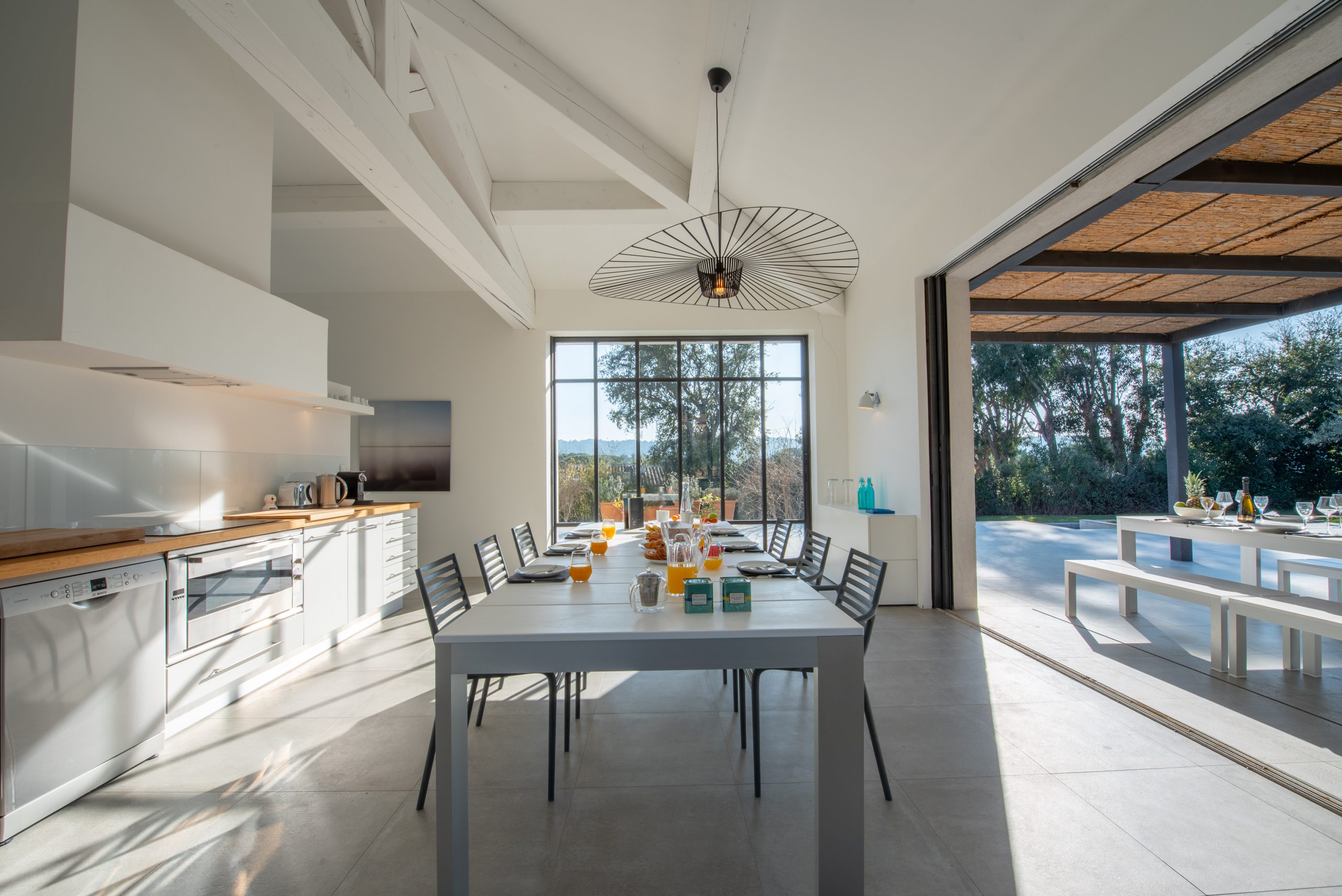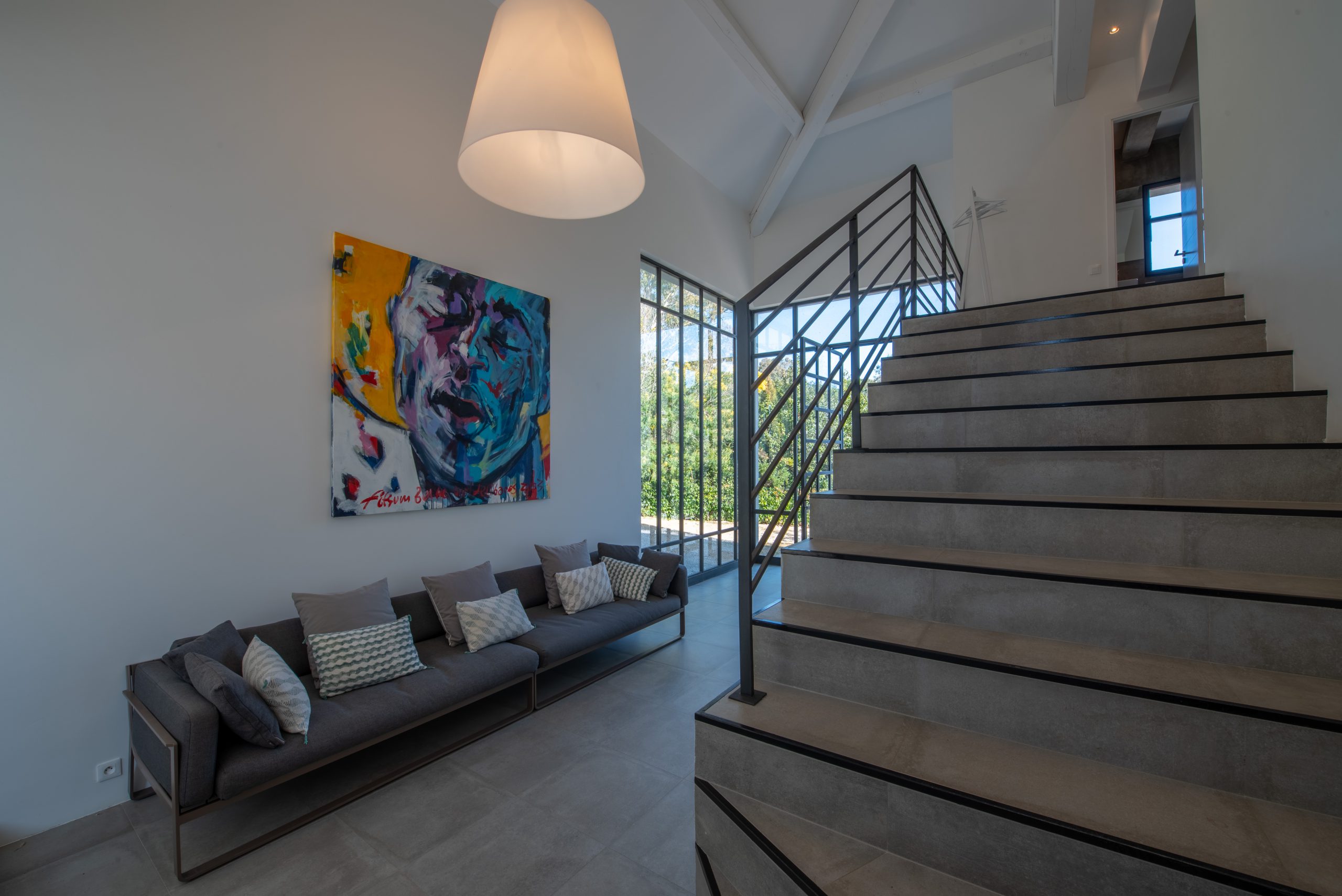 Belle villa contemporaine dans un parc très prisé dans le Golfe de Saint Tropez. Cette villa sera parfaite pour des vacances en famille ou entres amis avec 6 chambres pour accueillir 12 personnes. En fait, cette villa tournée vers l’extérieur avec de grandes fenêtres qui laissent entrer la lumière. Puis, toutes les pièces de vie donnent sur l’extérieur avec de grandes terrasses devant la piscine.
