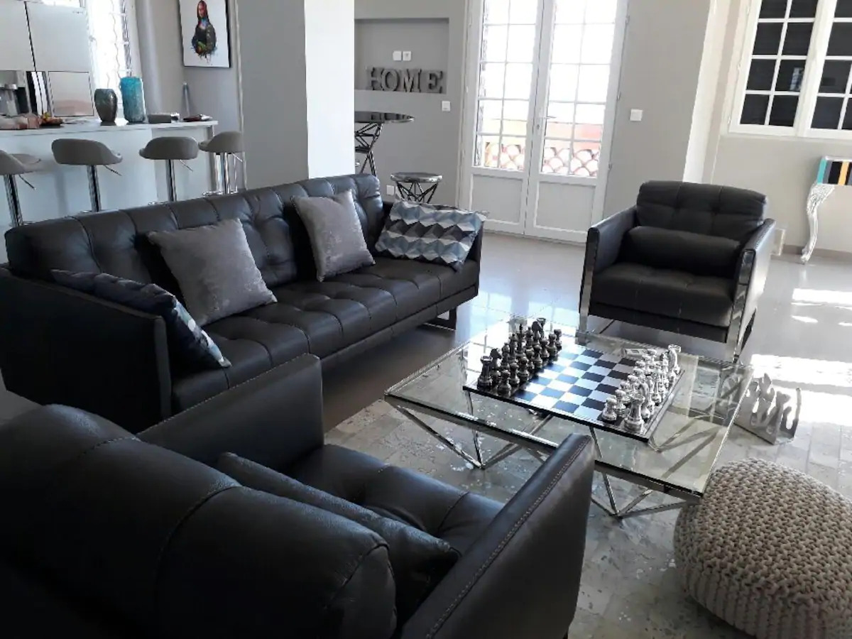 Terrasse vue panoramique pleine mer ,table et salon moderne ,BBQ.