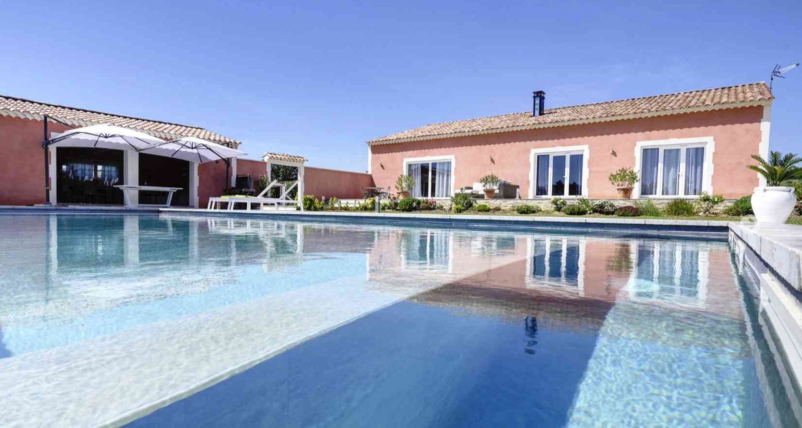 Cette villa de charme est orientée sud mais en forme de U à l’abri du Mistral. Les terrasses sont grandes et donnent directement sur la piscine de 12 M X 6 M. De plus, l’espaces extérieurs est aménagé avec du mobilier confortable pour profitez du soleil et de vivre en plein air.